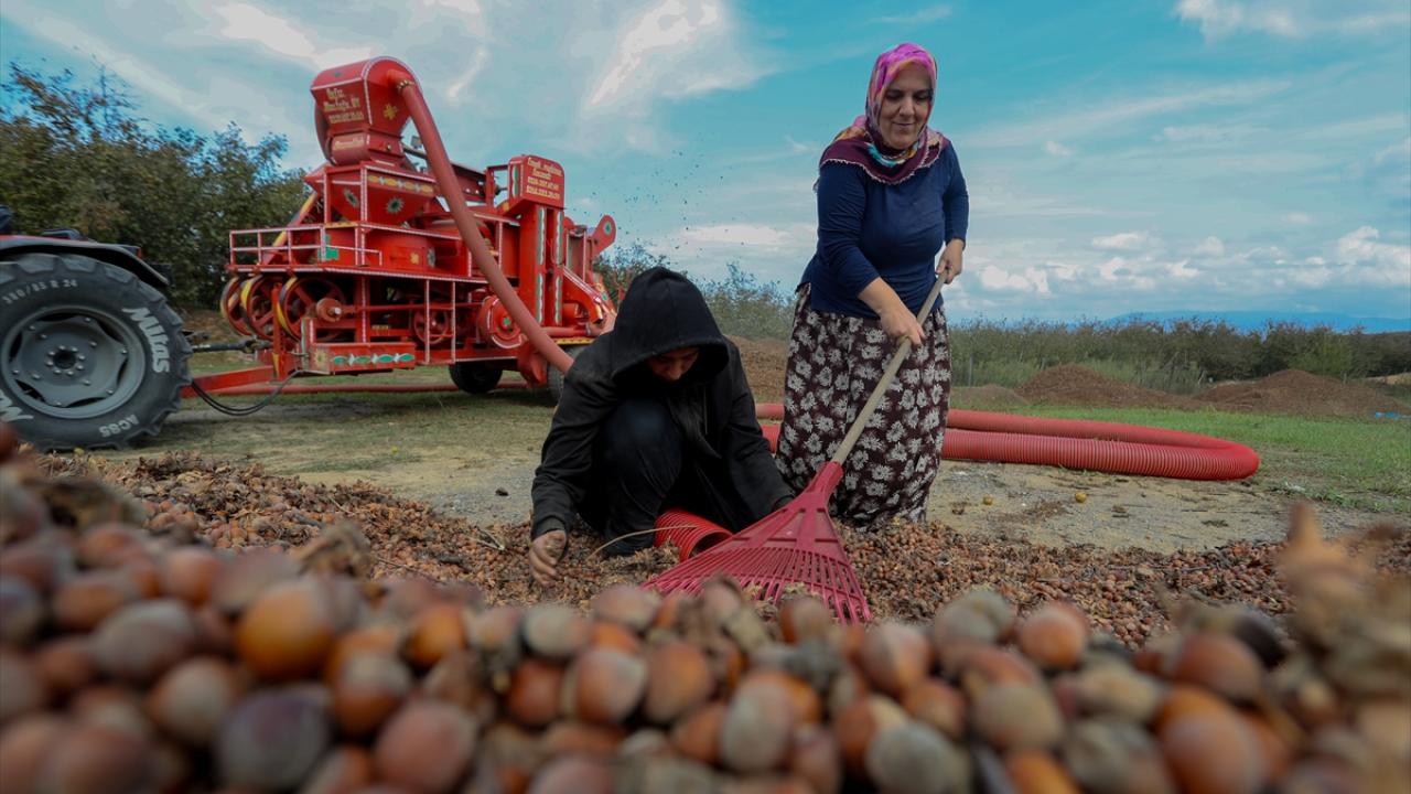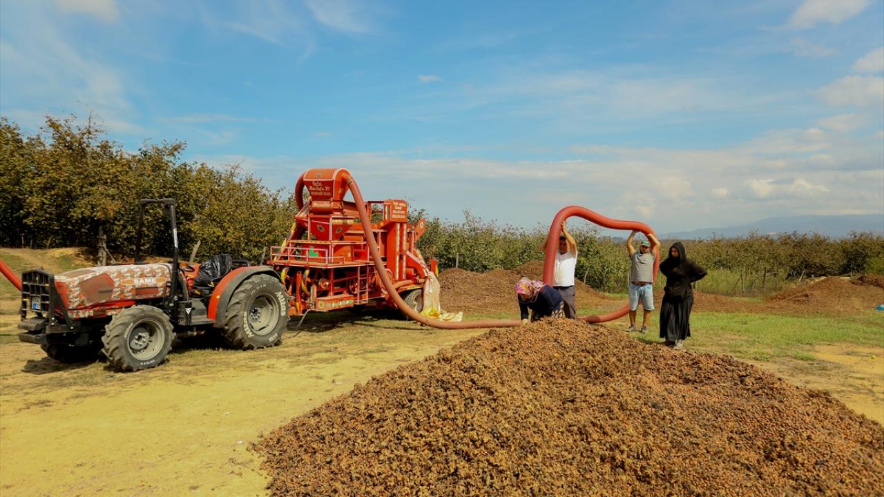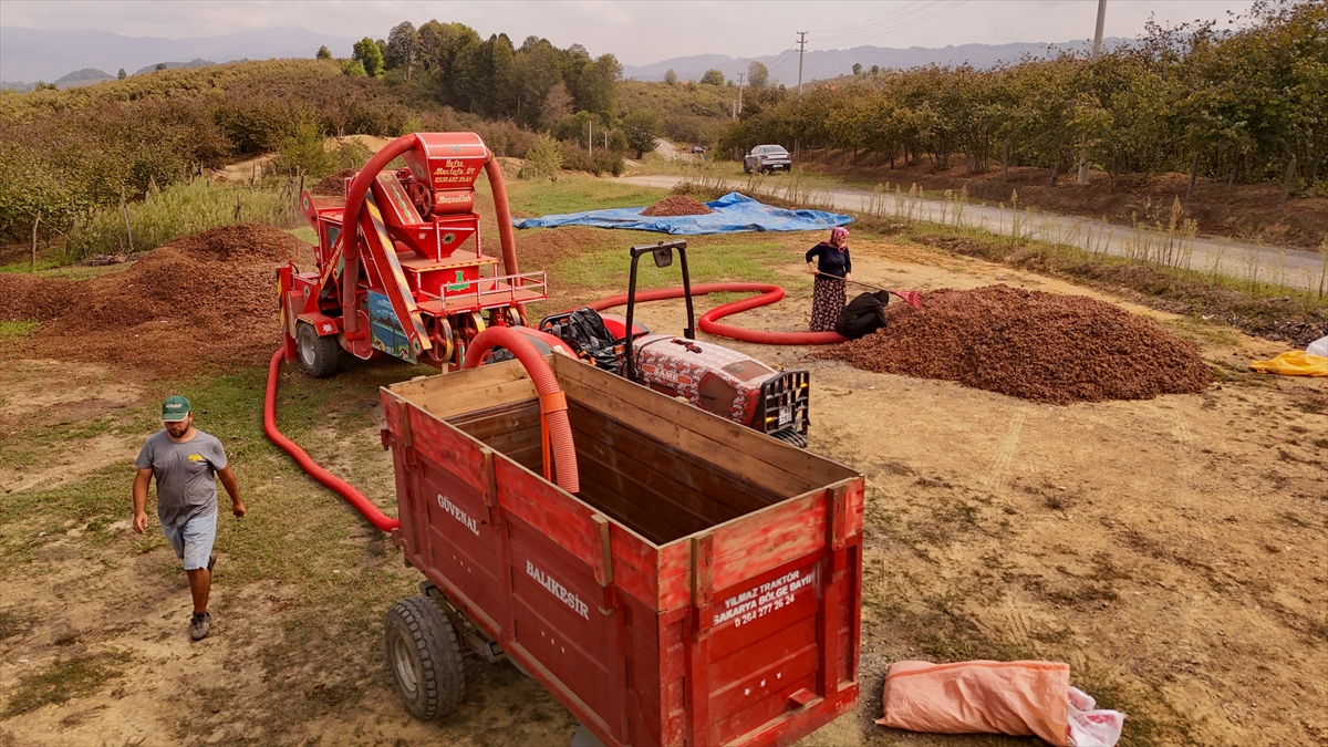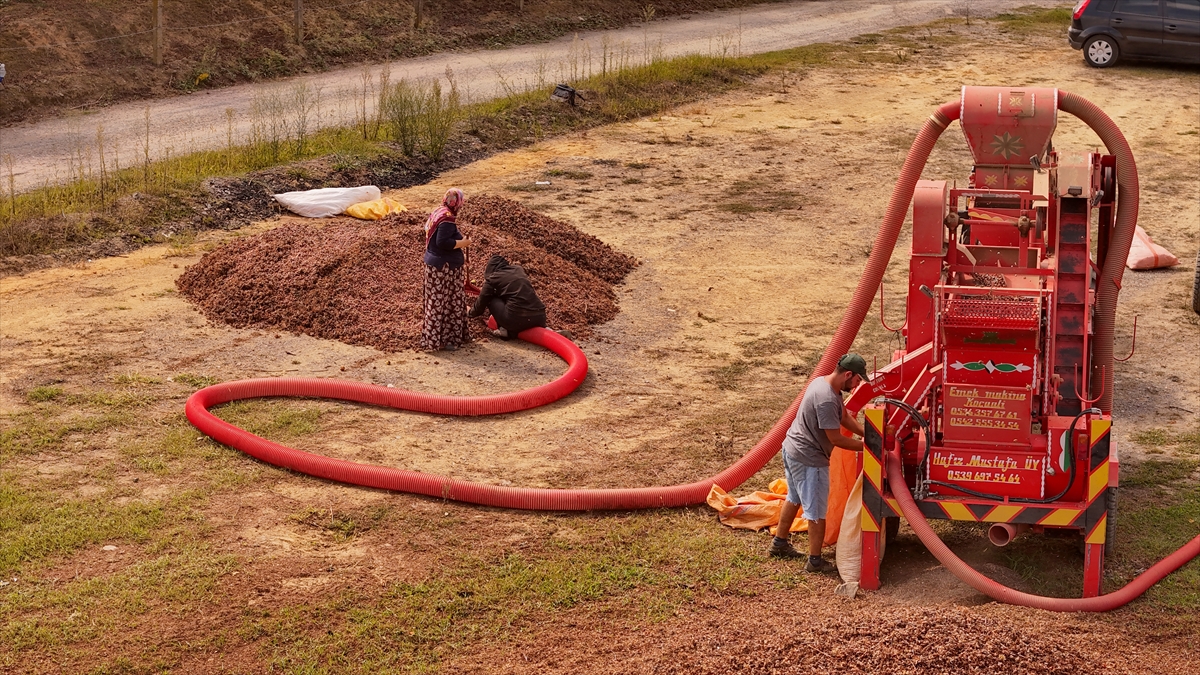 Sakarya`nın Kocaali ilçesinde çiftçiler, bahçelerde fındık toplamak ve ürünü kabuğundan ayırmak için patoz mesaisi yapıyor.