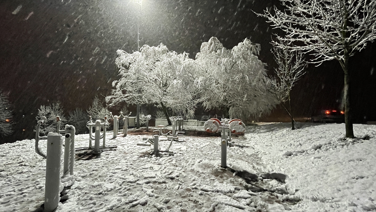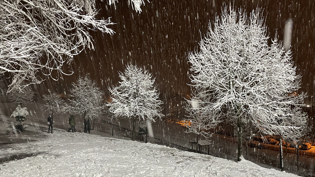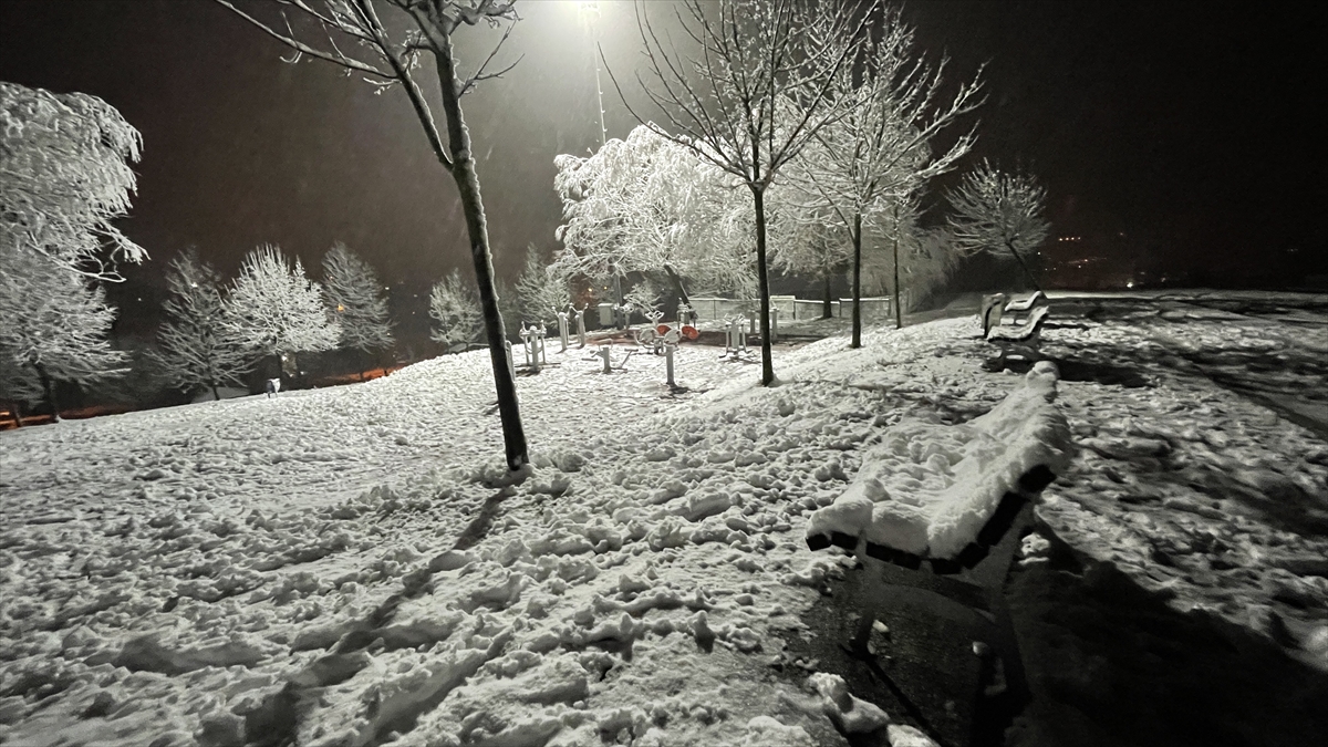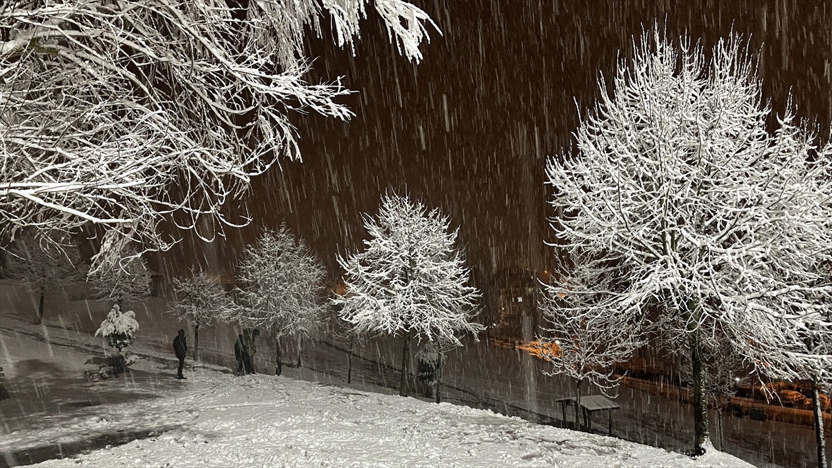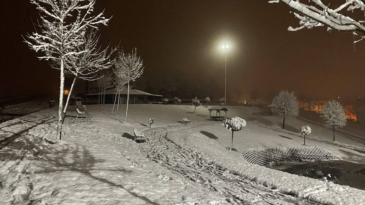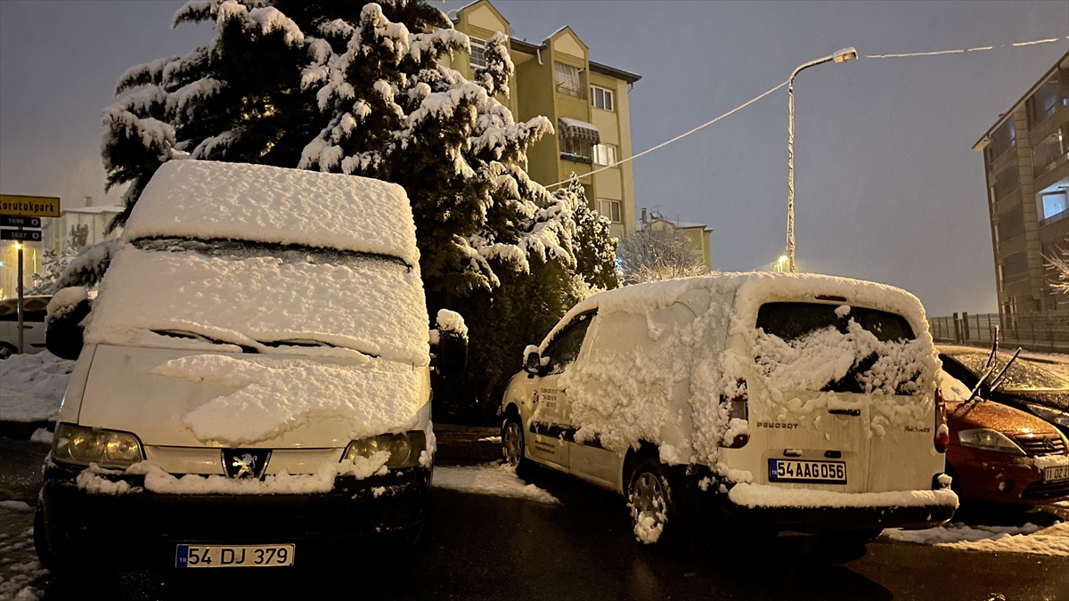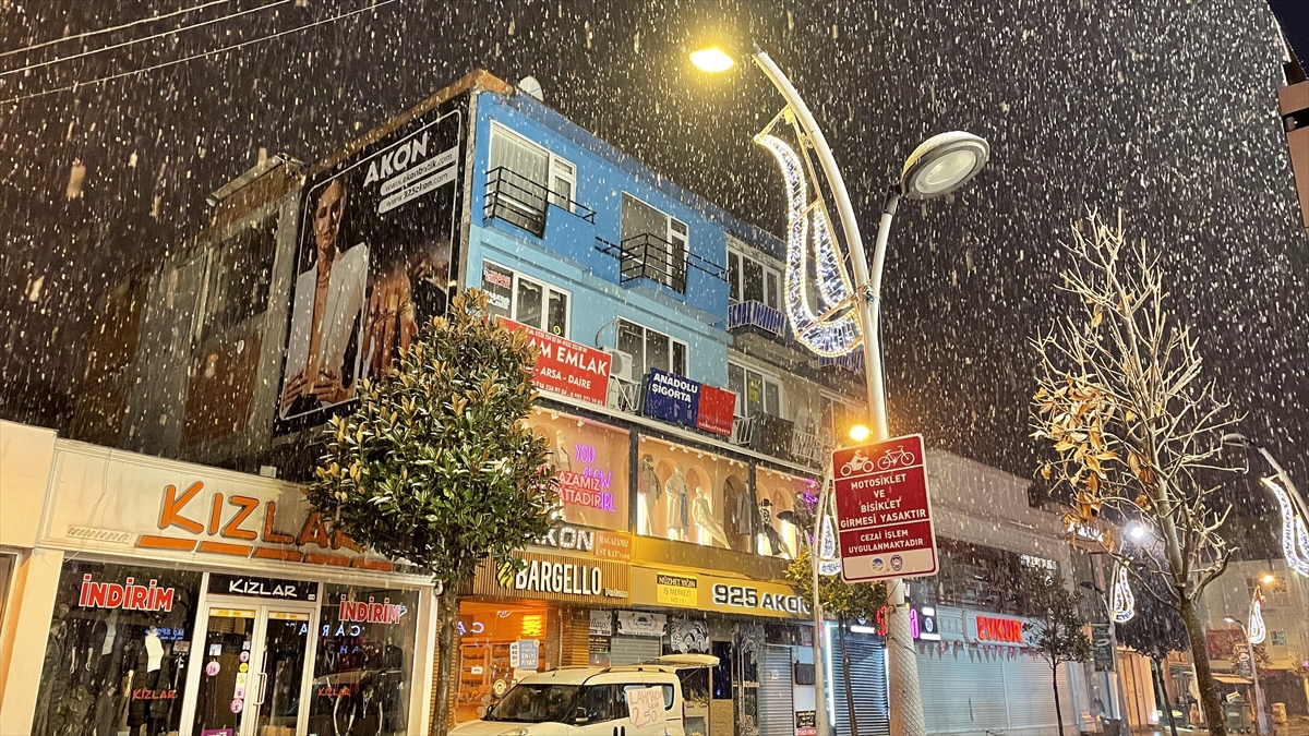 Sakarya'da etkili olan kar yağışıyla kent merkezi beyaza büründü.