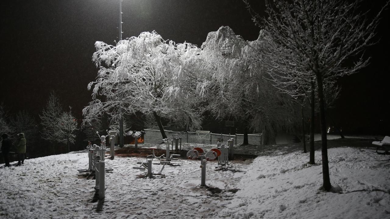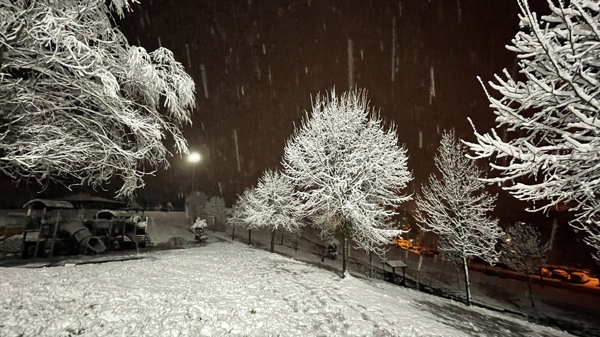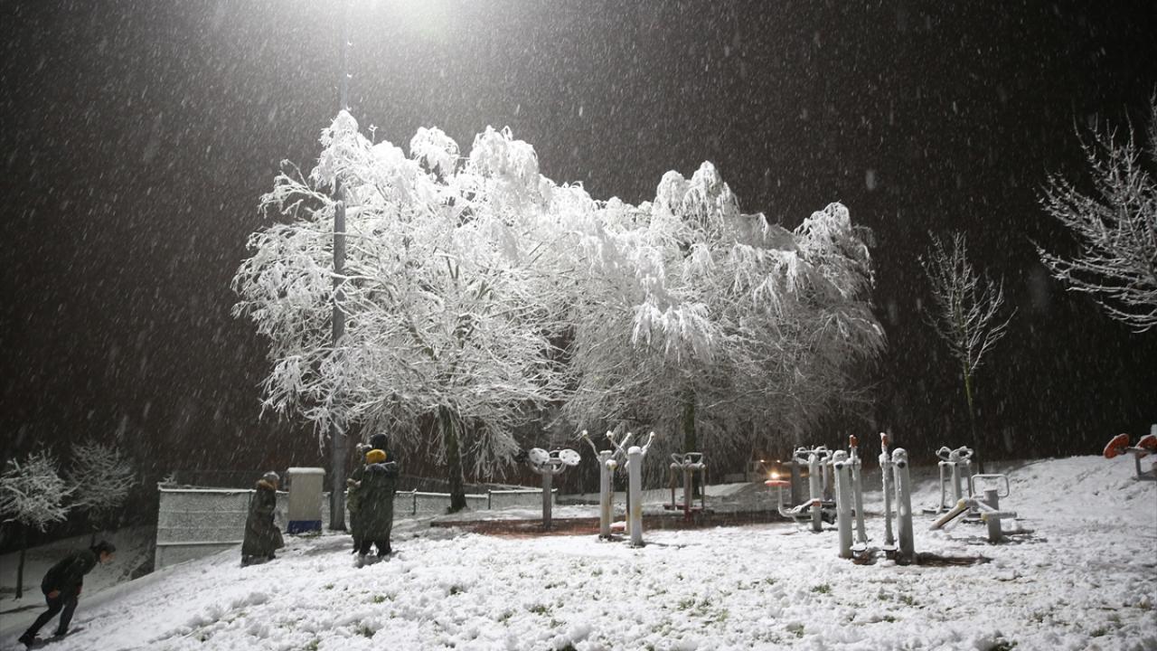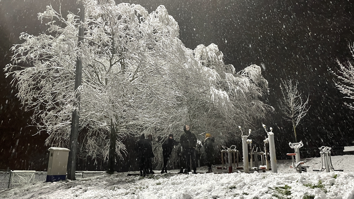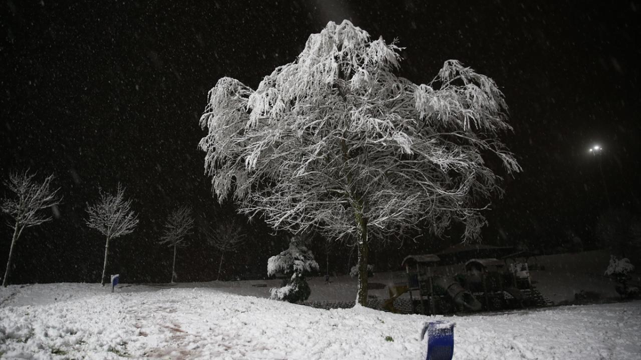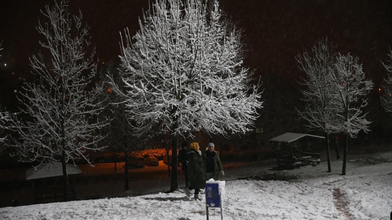 Sakarya'da etkili olan kar yağışıyla kent merkezi beyaza büründü.