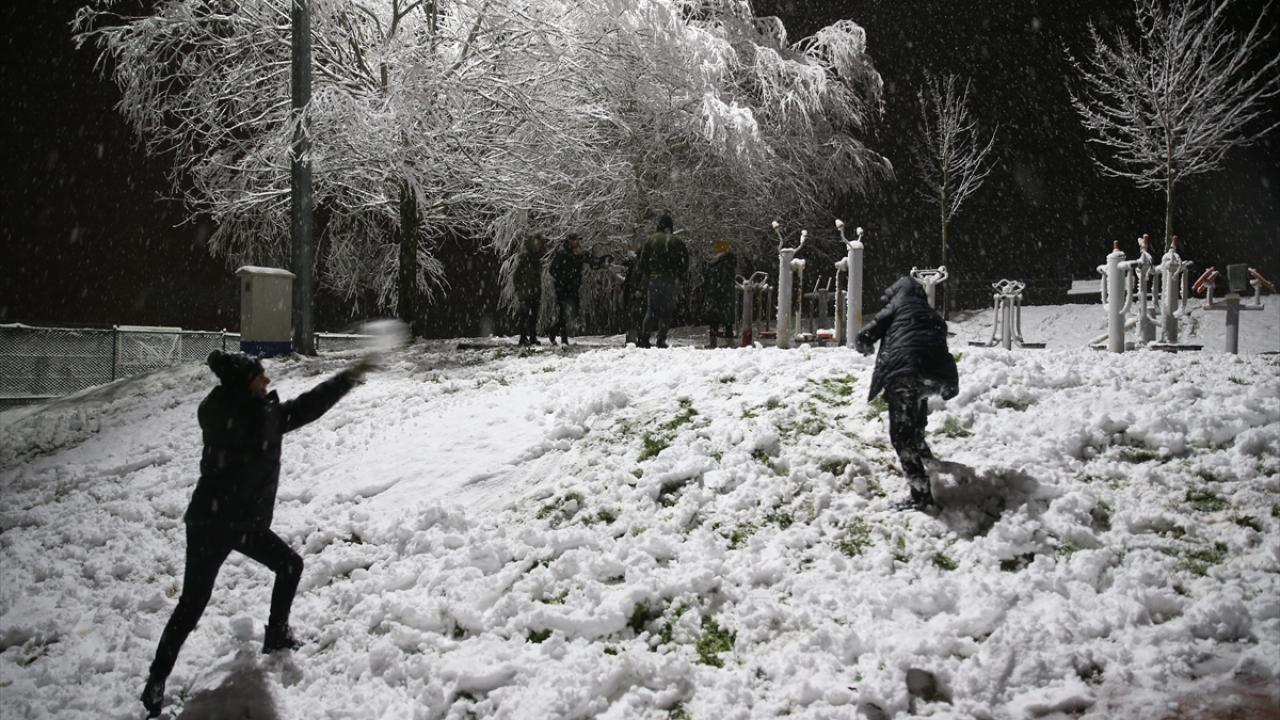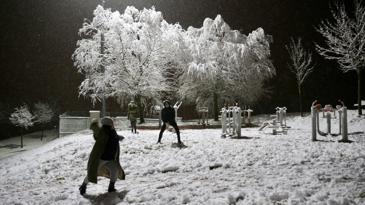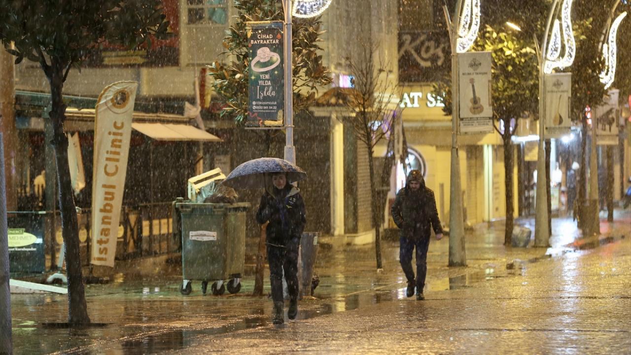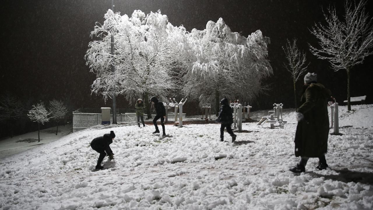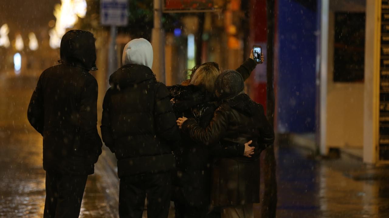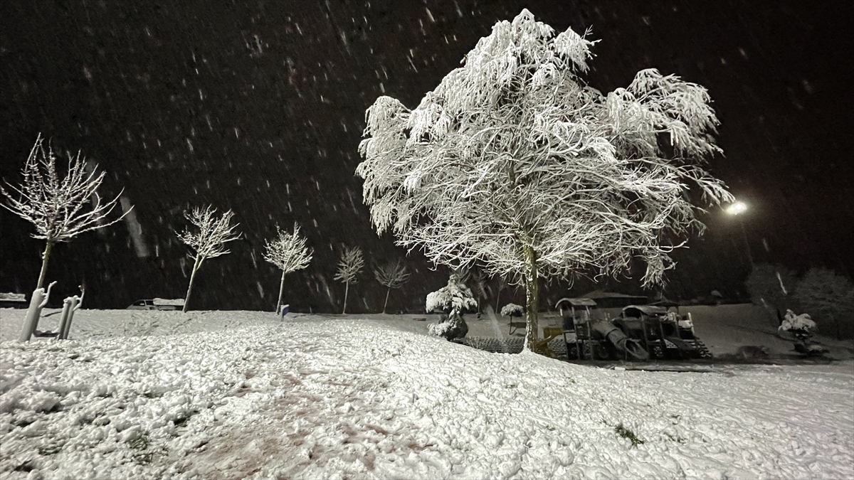 Sakarya'da etkili olan kar yağışıyla kent merkezi beyaza büründü.