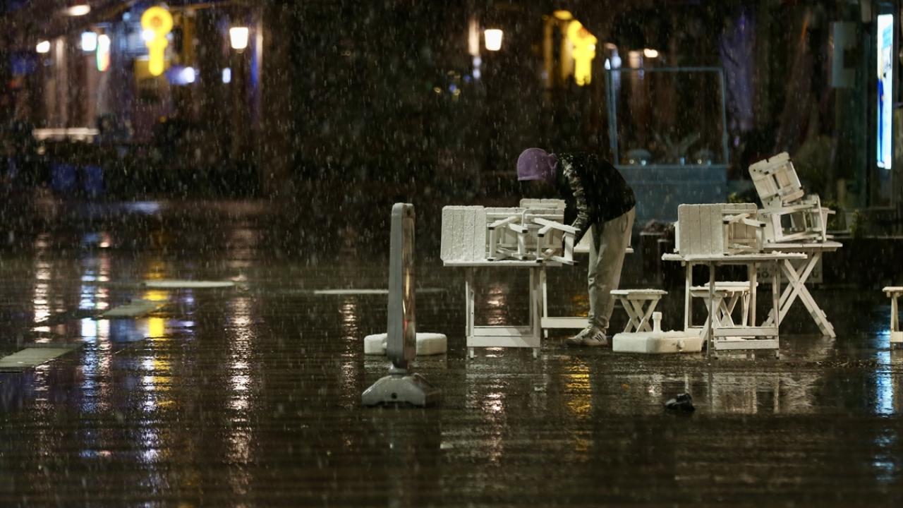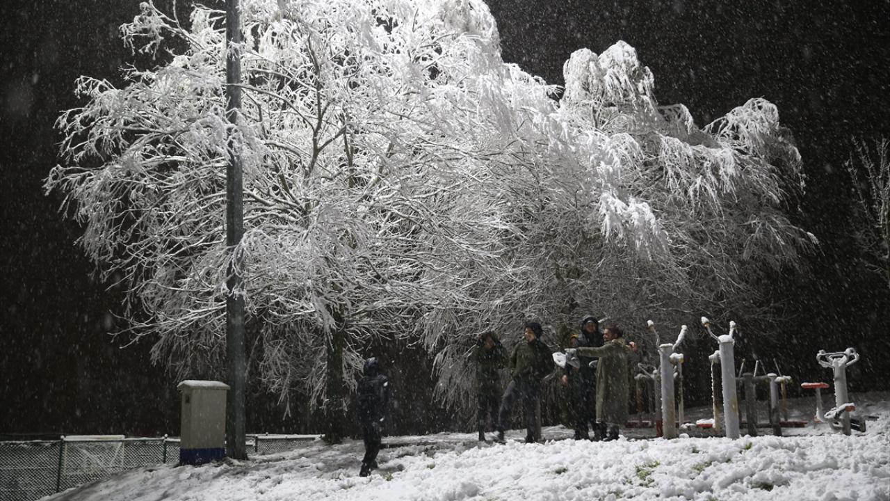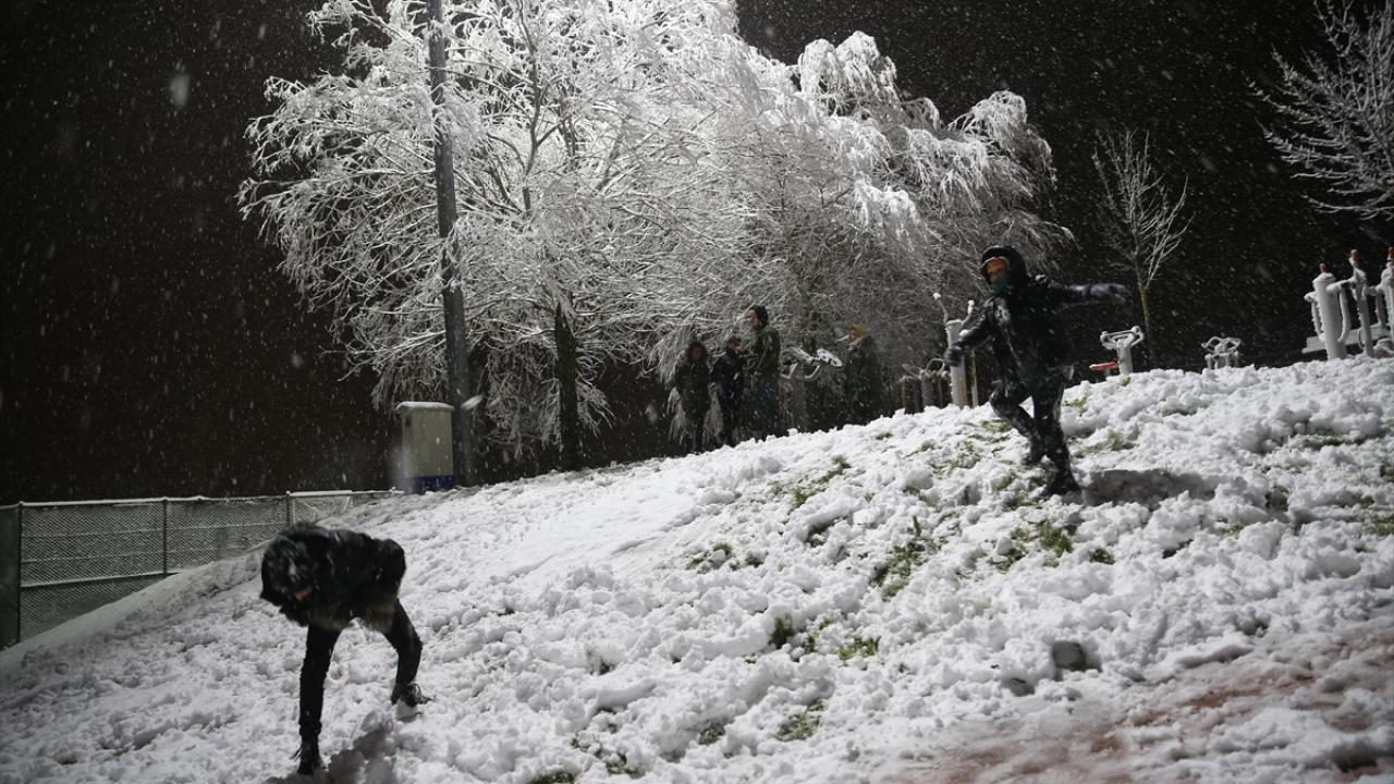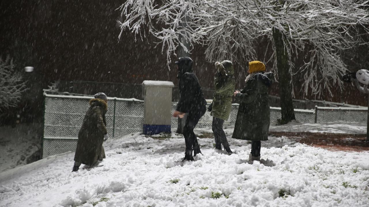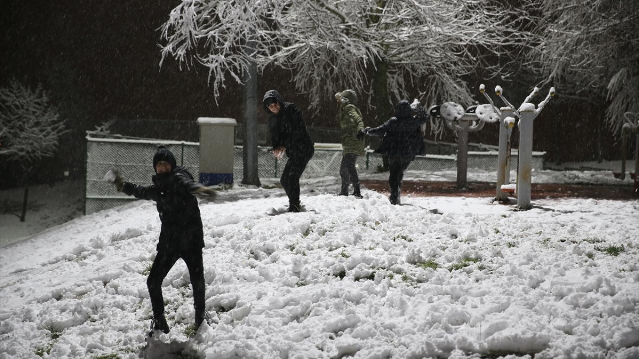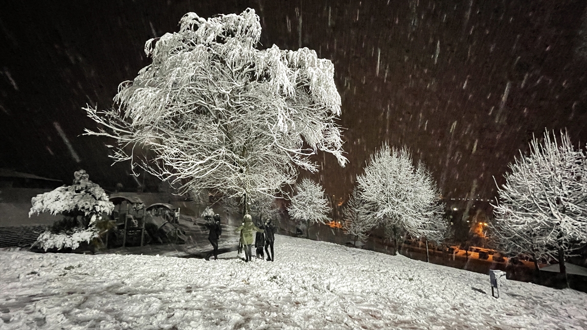 Sakarya'da etkili olan kar yağışıyla kent merkezi beyaza büründü.