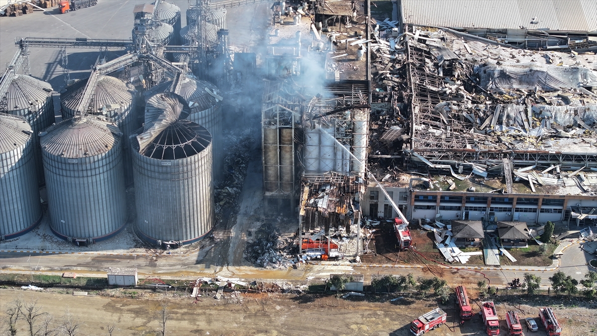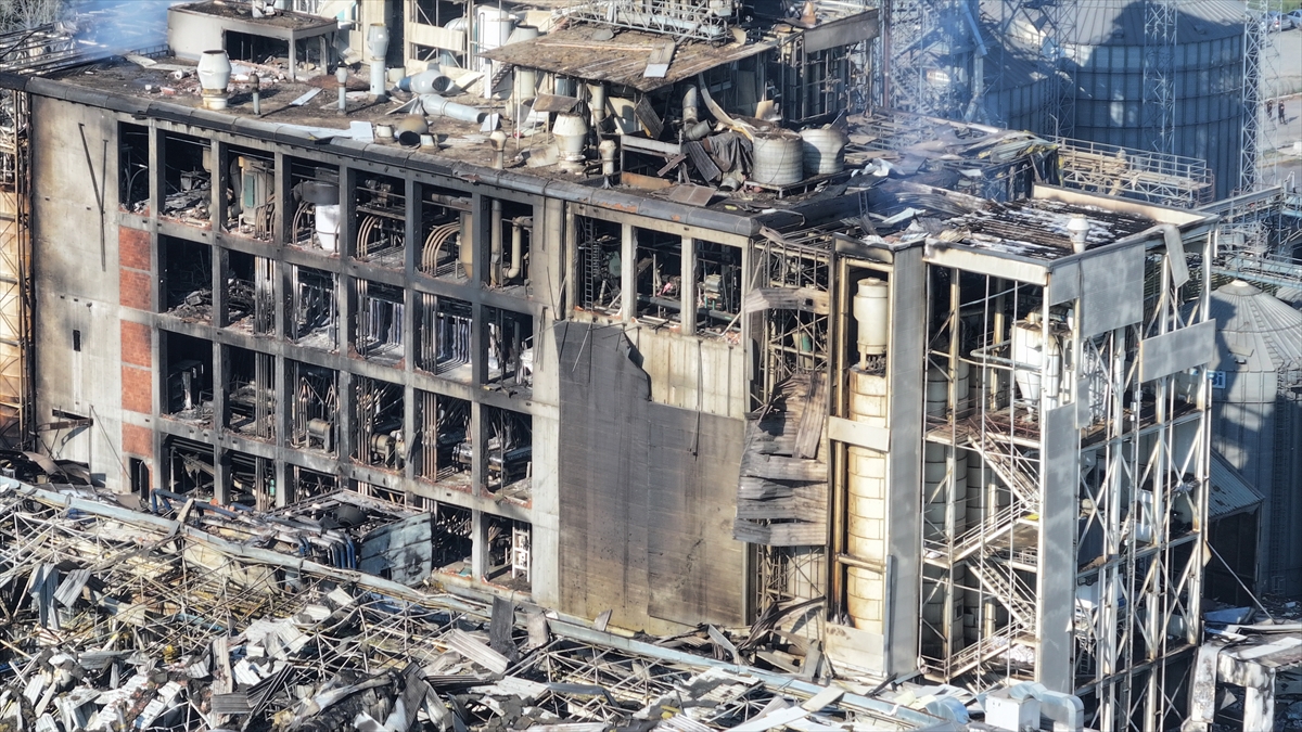 Patlamanın meydana geldiği fabrikadaki hasar havadan görüntülendi.