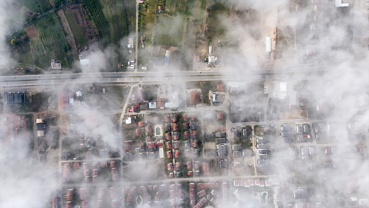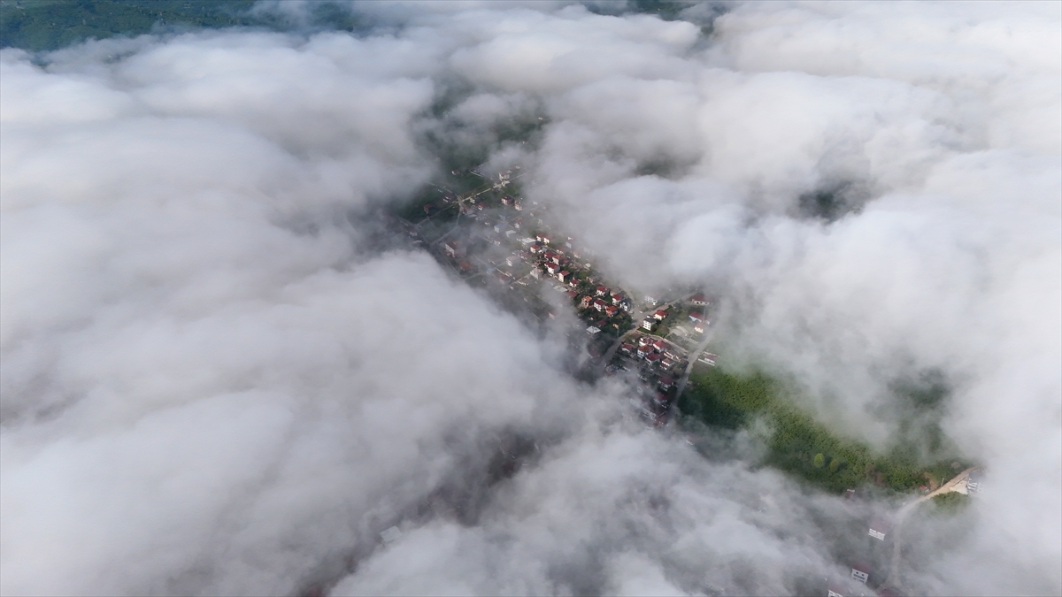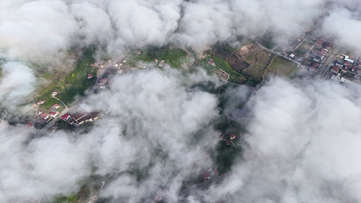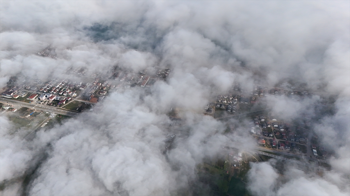 Sis bulutunun oluşturduğu güzel manzara havadan da görüntülendi.