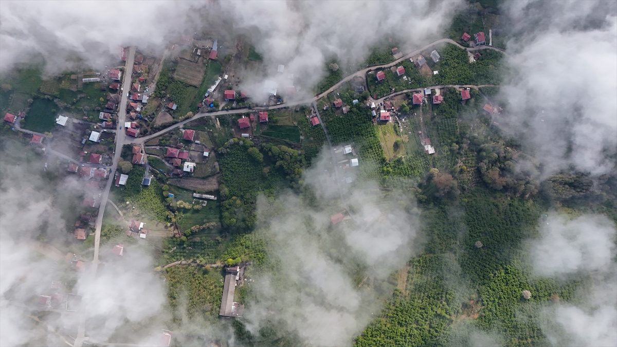 İlçe merkezi, fındık bahçeleri ve denizin üzeri sisle kaplandı.