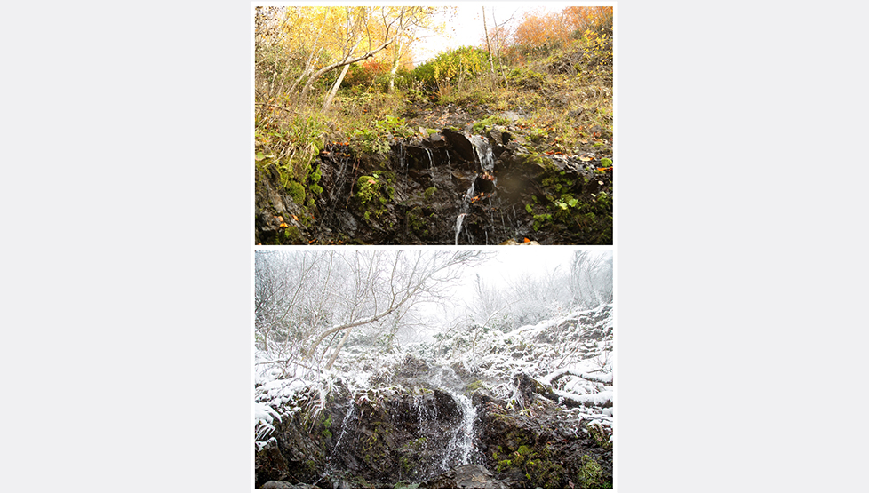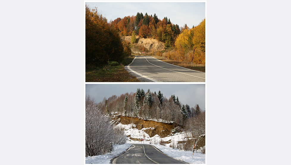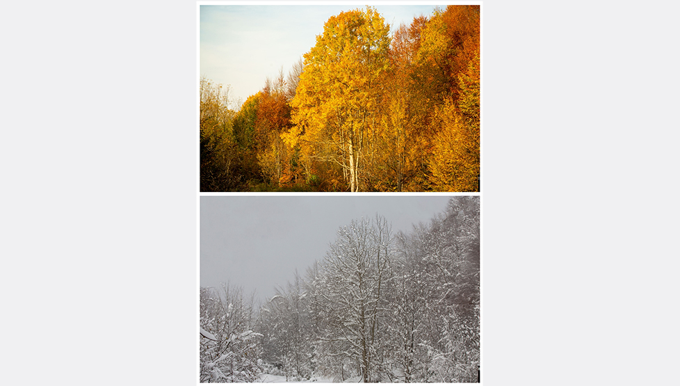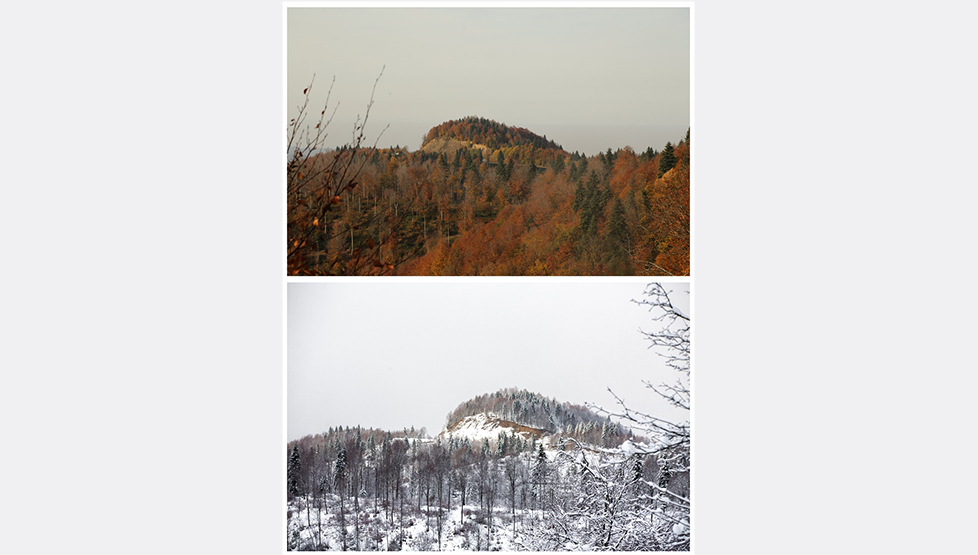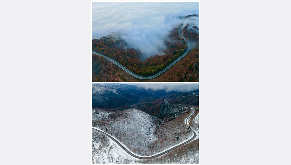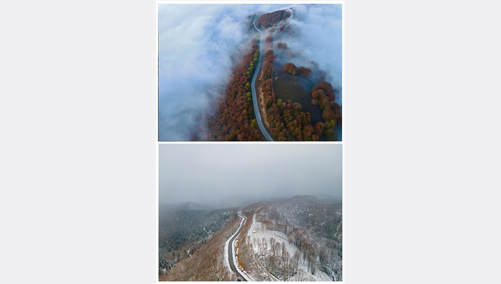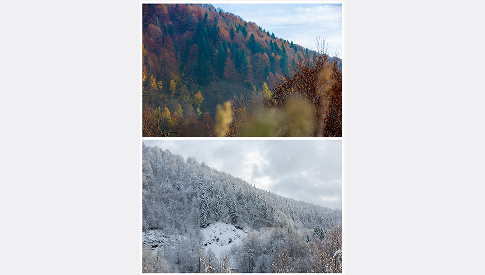 Sakarya'da 900 rakımlı Çam Dağı'nın farklı noktalarında kışın çekilen fotoğrafların aynı noktadan çekilmiş sonbahar halleri doğanın muhteşem renk değişimini gözler önüne seriyor.