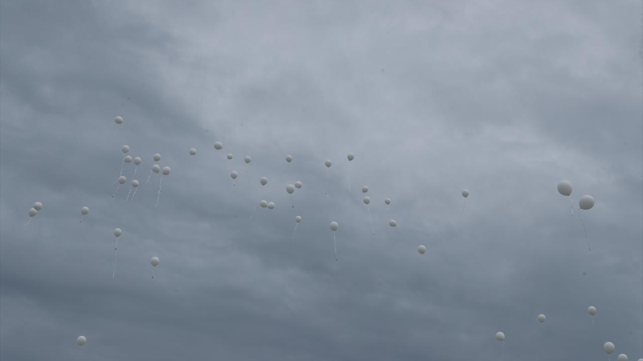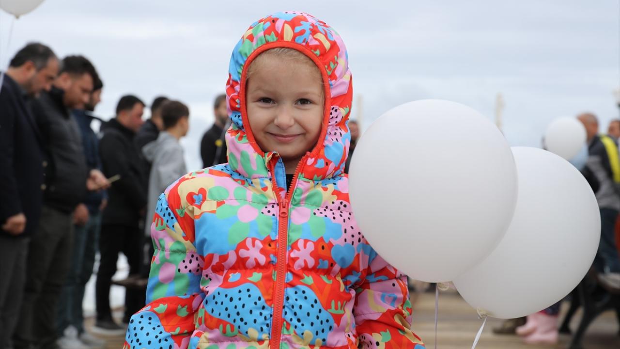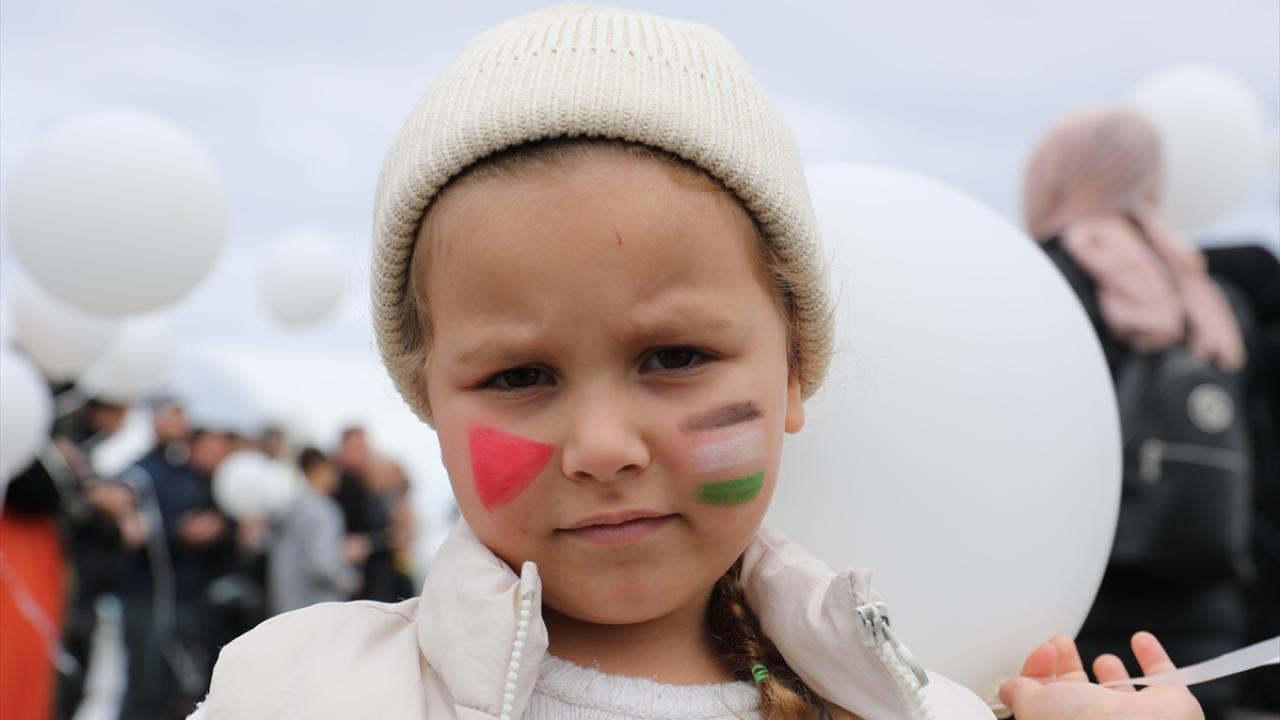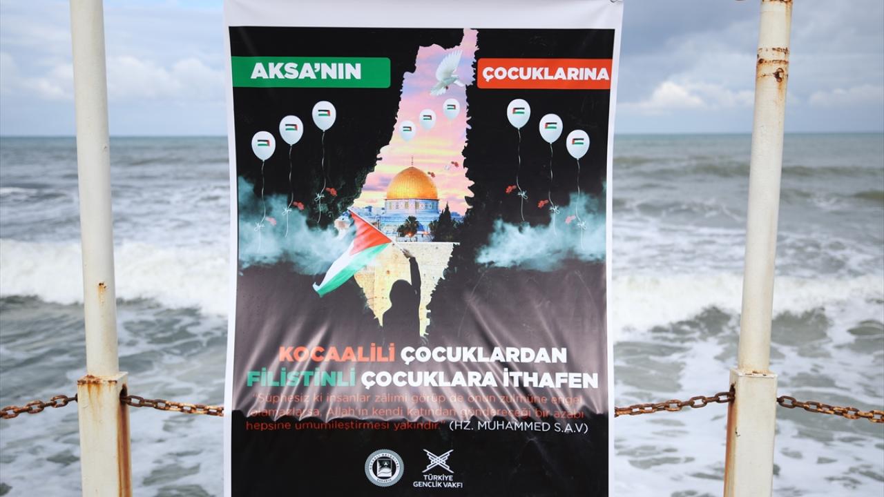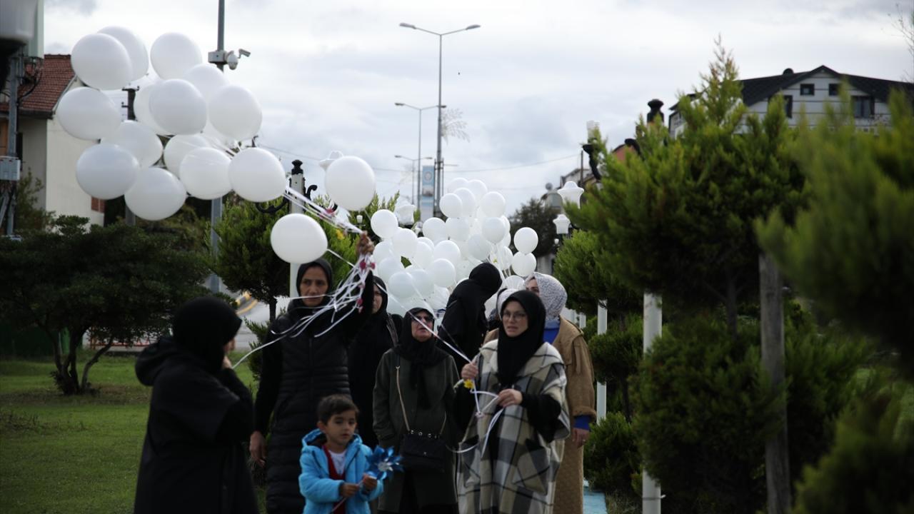 Sakarya'nın Kocaali ilçesinde çocuklar, İsrail'in saldırılarında yaşamlarını yitiren Filistinli bebekler ve çocuklar için beyaz balonları gökyüzüne saldı.