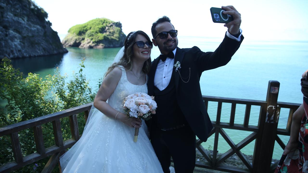 Düğün fotoğrafı çektirmek için Hoynat Adası`nı tercih eden gelin Safiye Denizkuşu ise "Burası adeta doğa harikası bir yer. Biz de düğün öncesi en güzel anılarımızı burada ölümsüzleştirmek istedik." dedi.