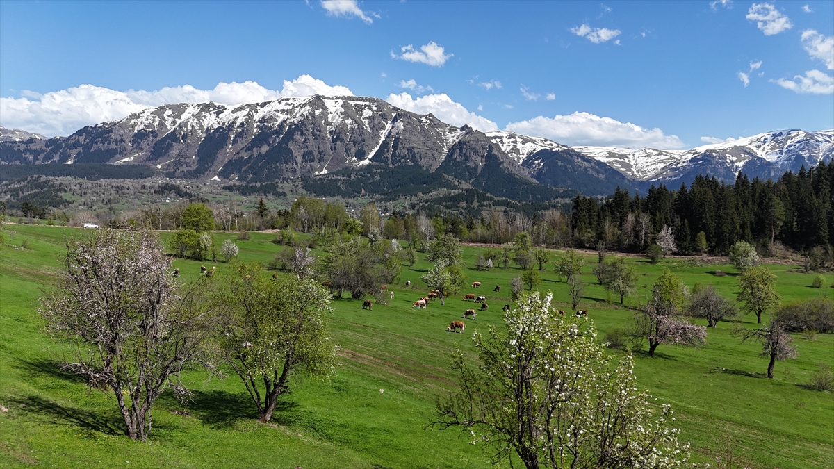 Kışı çetin geçiren ilçede ilkbaharla birlikte havaların ısınmasıyla doğa yeşermeye başladı.