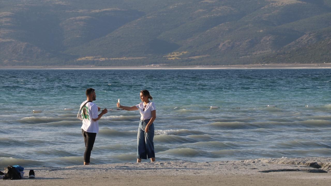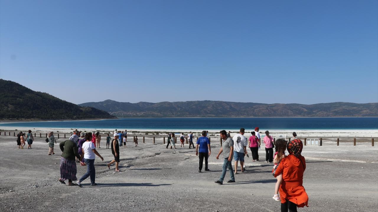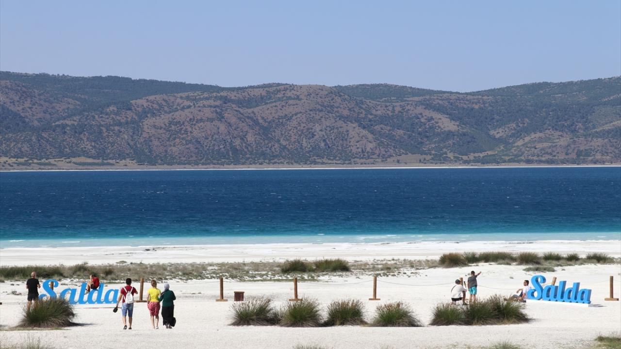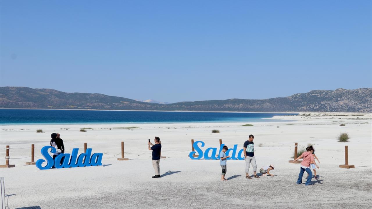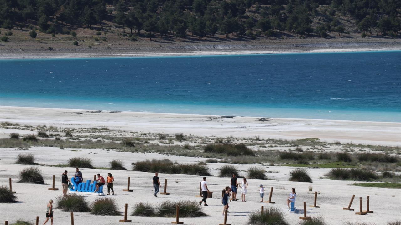 Burdur'da turkuaz rengi ve beyaz kumsalı dolayısıyla "Türkiye'nin Maldivleri" olarak nitelenen Salda Gölü, Kurban Bayramı tatilinde ziyaretçilerini ağırlıyor.