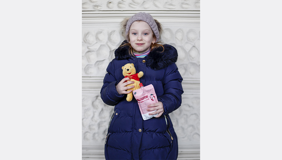 Saldırıların ardından ülkesini terk eden çocuklardan Julia (12), Bogtana (12), Anastasia (10), Eva (7), Nastia (6), Sonia (10), Anna (7), Miroslava (4), Jasmin (2), Sofia (3), Jaroslaw (4) ve Nazar (9) kaçarken yanına bir oyuncağını alabilen ve yeniden evine diğer oyuncaklarına kavuşmayı umut eden çocuklardan biri.