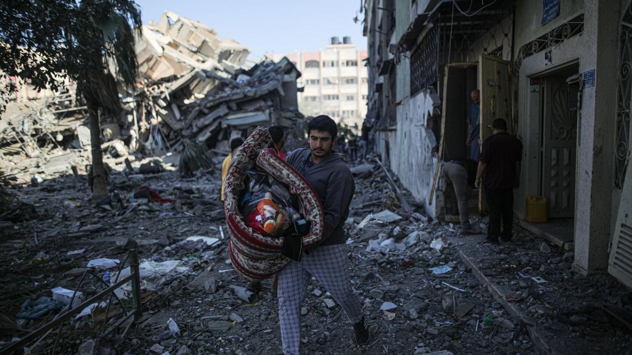 Filistinliler, enkaz arasındaki hayvalarını kurtarmaya çalıştı.