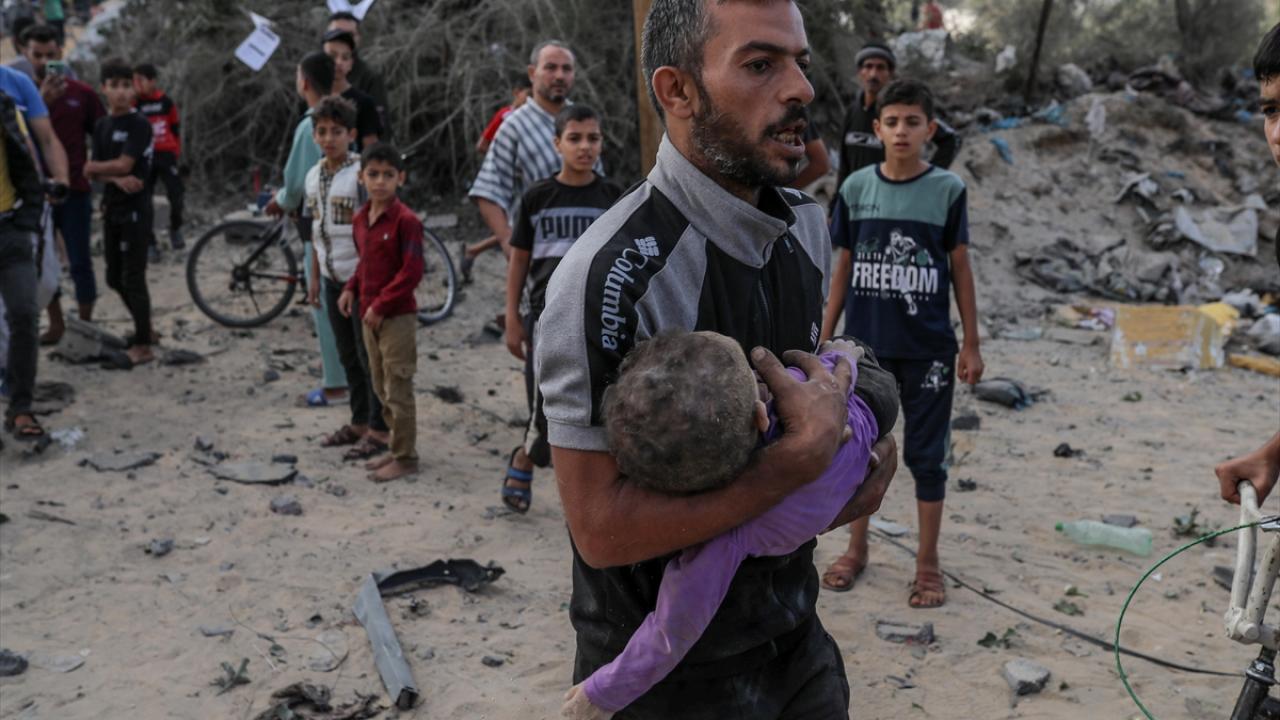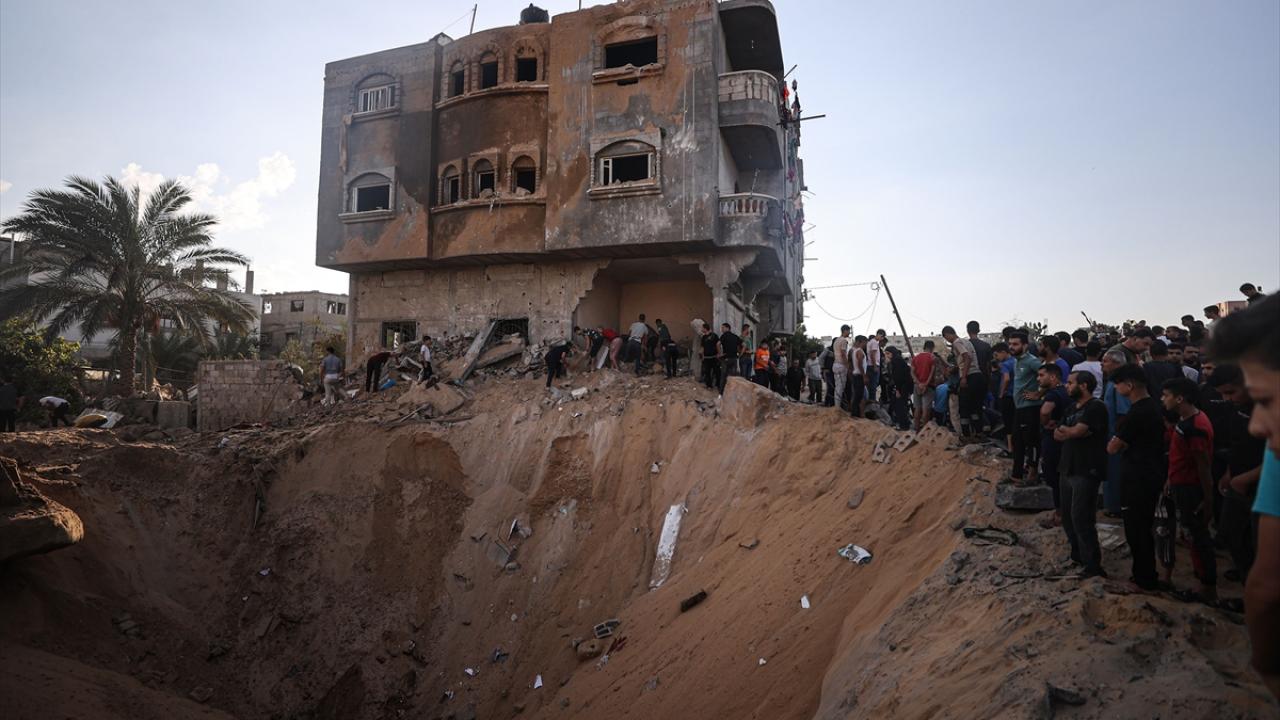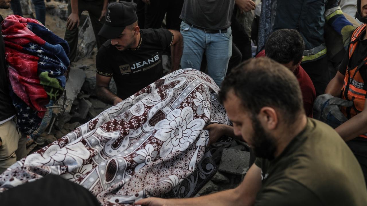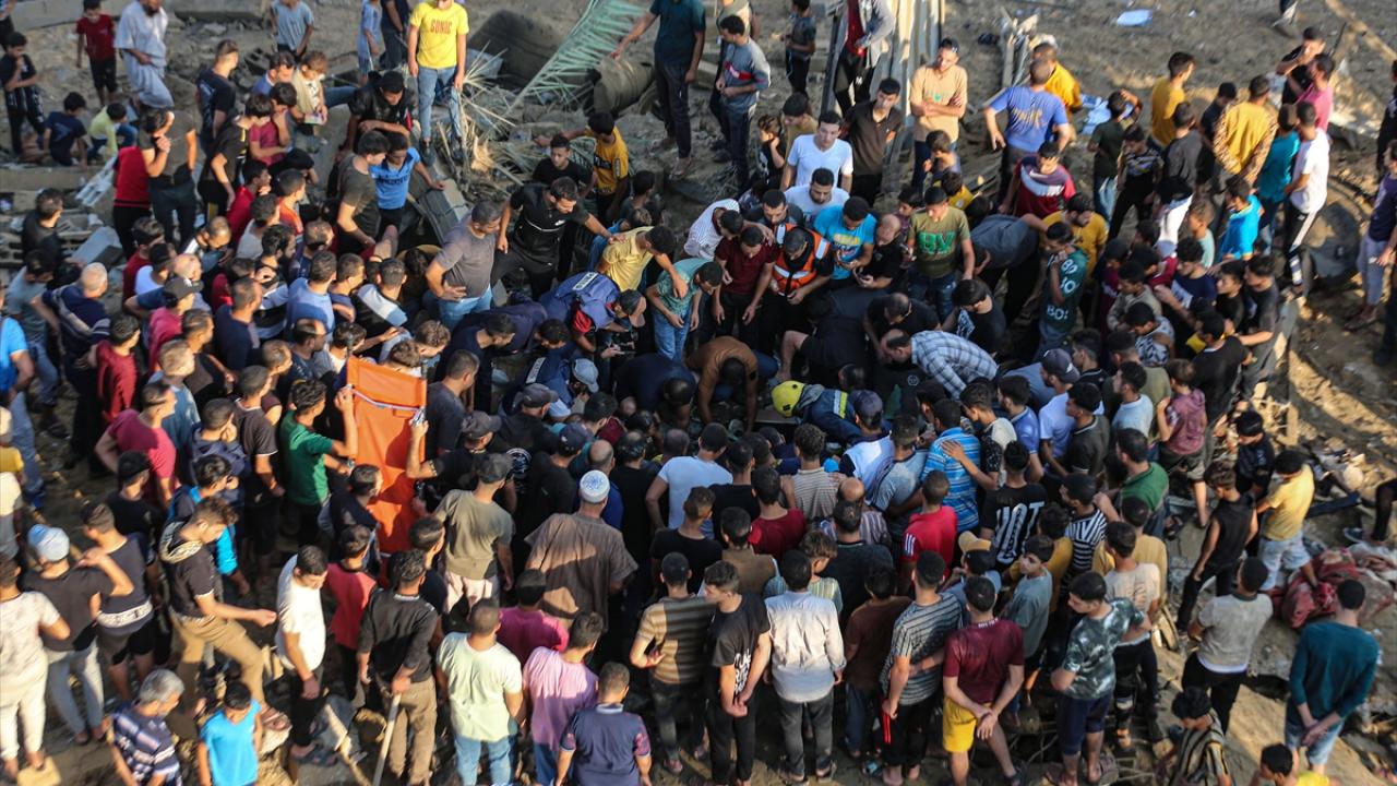 Han Yunus kentine düzenlenen saldırılarda yerle bir olan Mısri ailesine ait eve gelen sivil savunma ekipleri ve bölge sakinleri arama kurtarma çalışması başlattı.