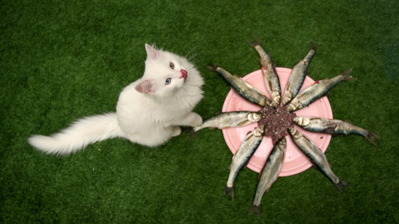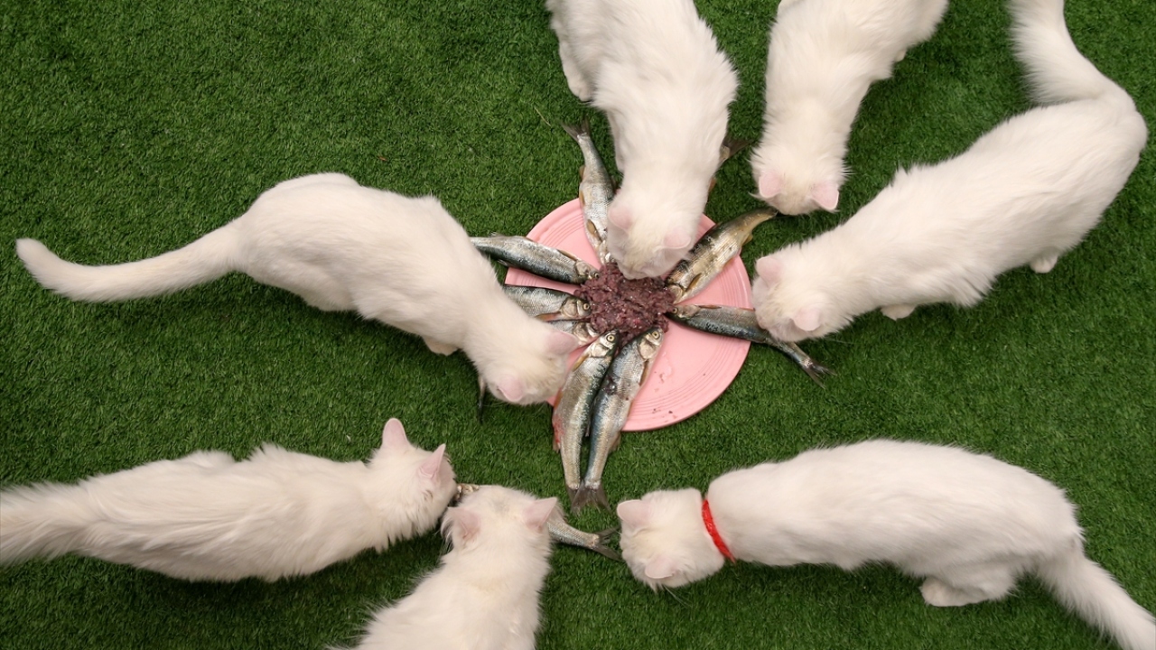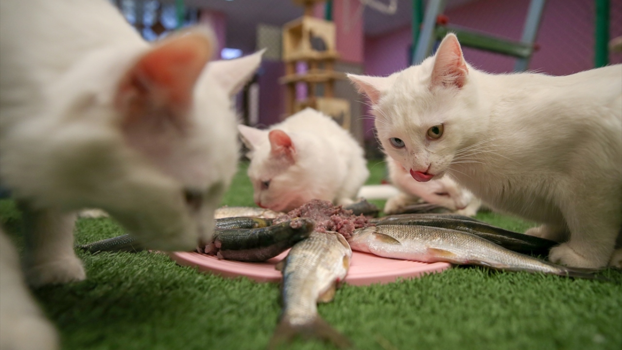 Beslenmelerine de özen gösterilen merkezde, kedilerin mama menüsüne 3 aydır, Van Gölü`nde yaşayan endemik balık türü inci kefali de eklendi.
