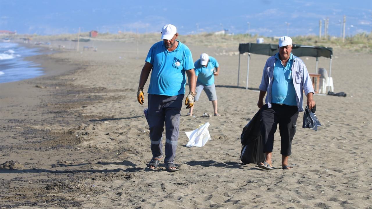 Hatay Büyükşehir Belediyesi Çevre Koruma ve Kontrol Dairesi Başkanlığı ekiplerinin de kıyıdaki çalışmaları sürüyor.