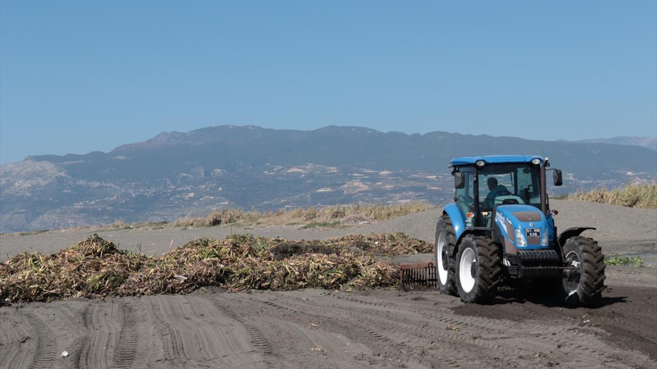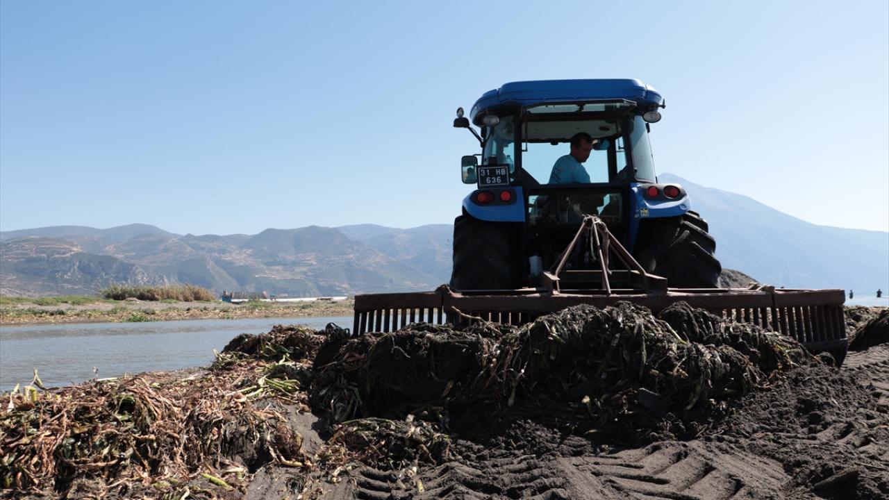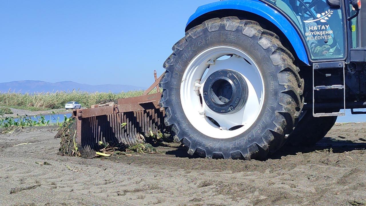 Samandağ sahilini kaplayan su sümbülleri temizleniyor