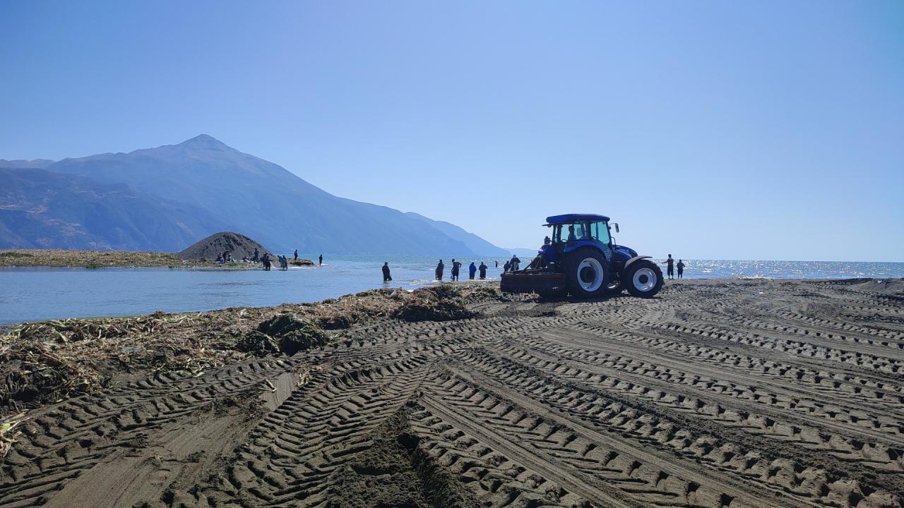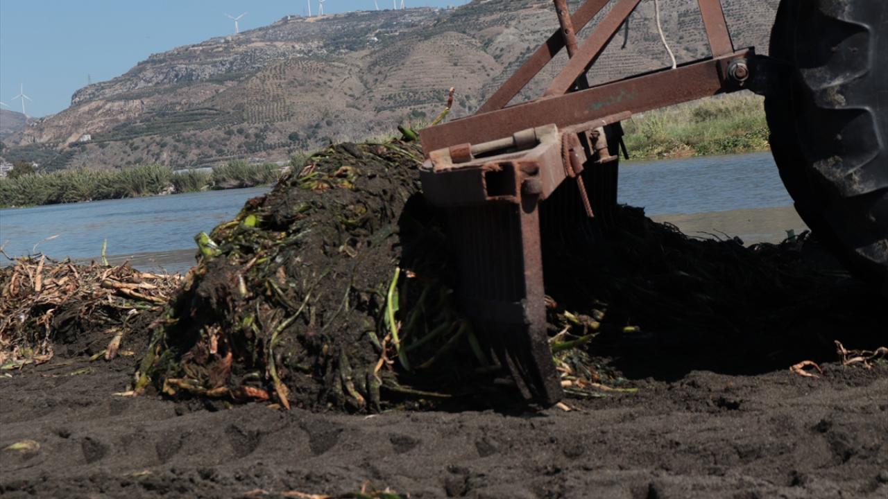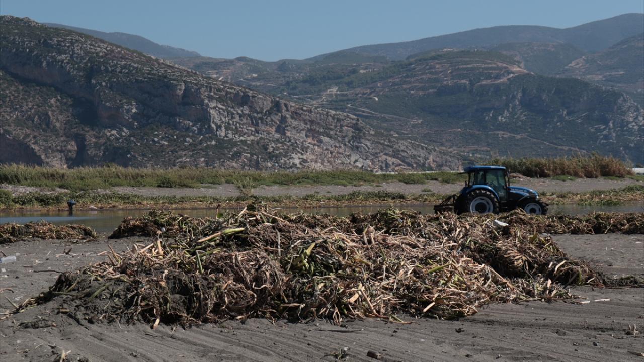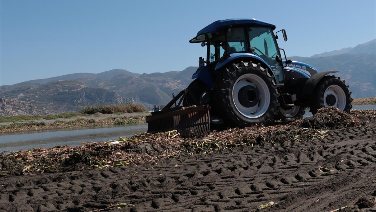Samandağ sahilini kaplayan su sümbülleri temizleniyor