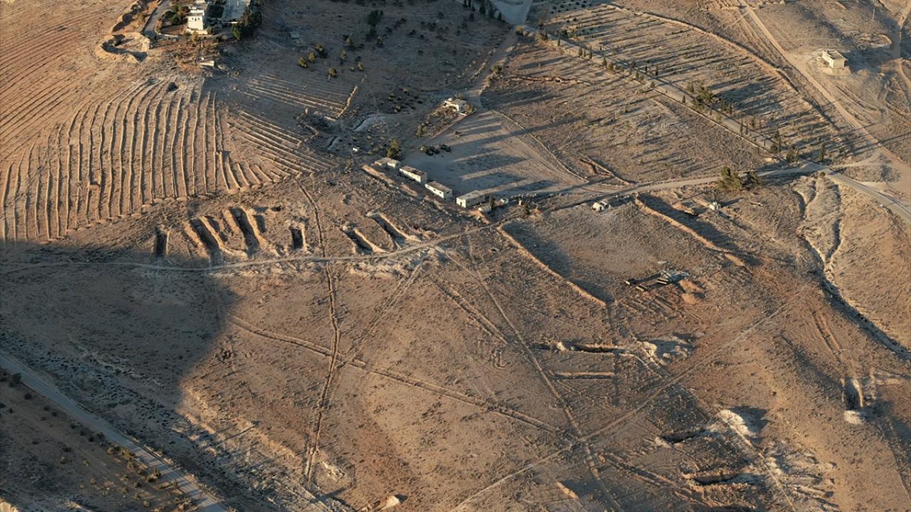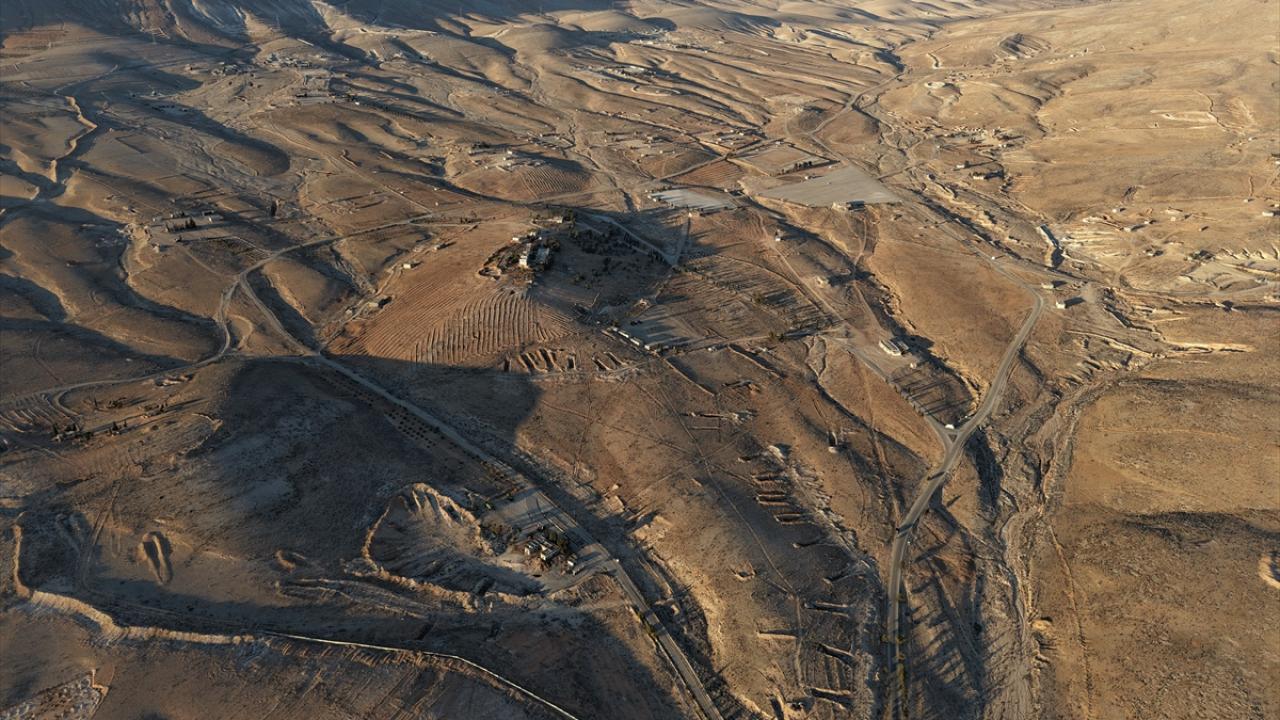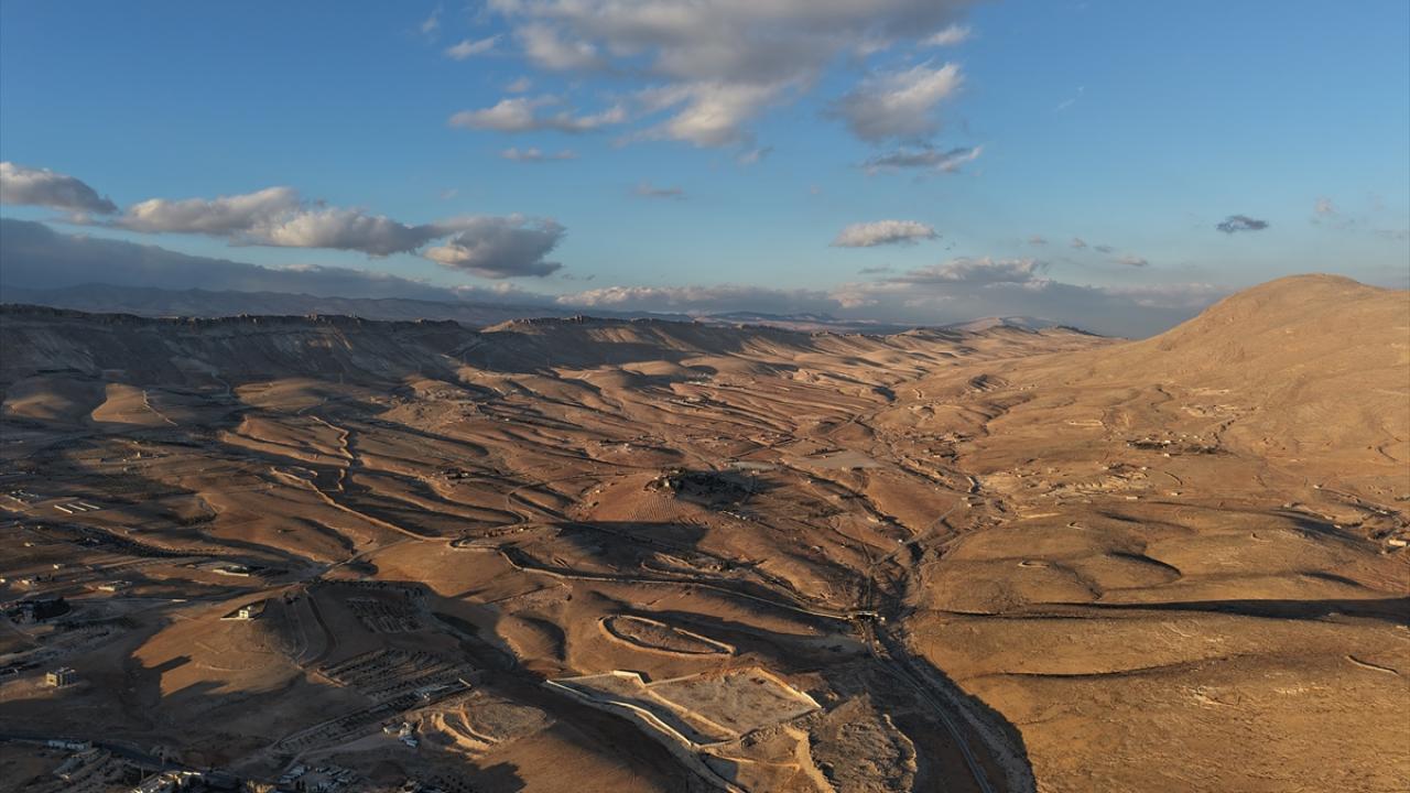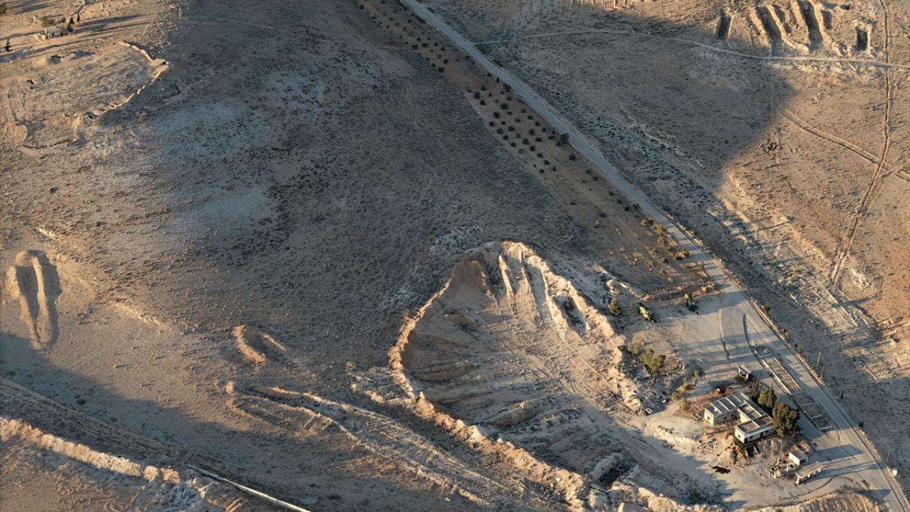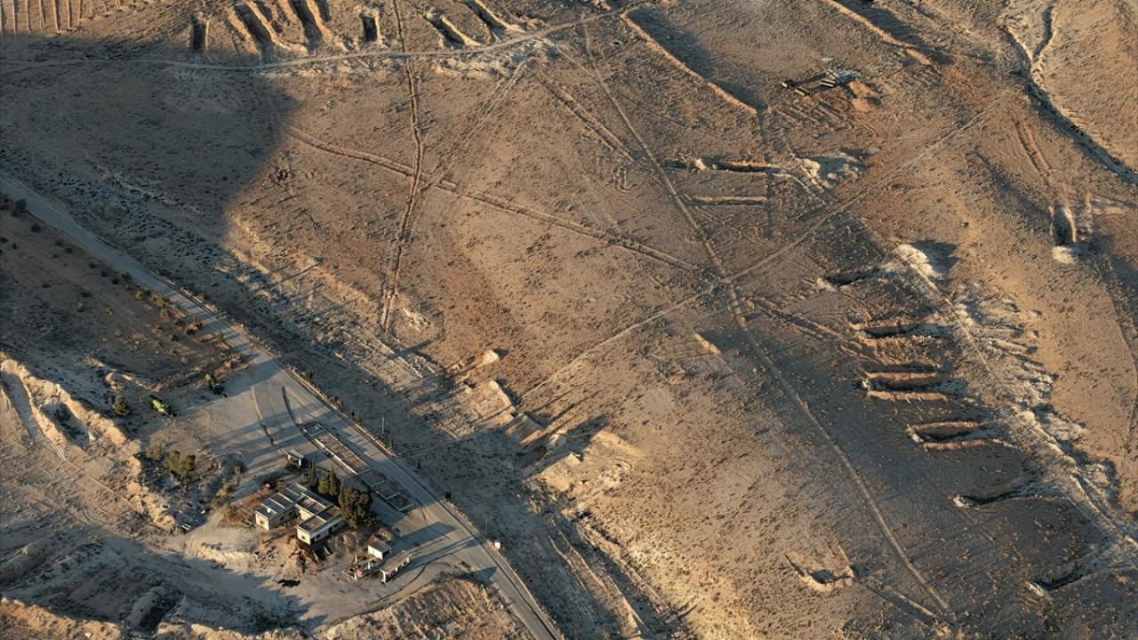 Havadan çekilen görüntülerde tesisin yüksek tepede kurulu olduğu ve çevresinde yüksek toprak yığınlarının bulunduğu görüldü.