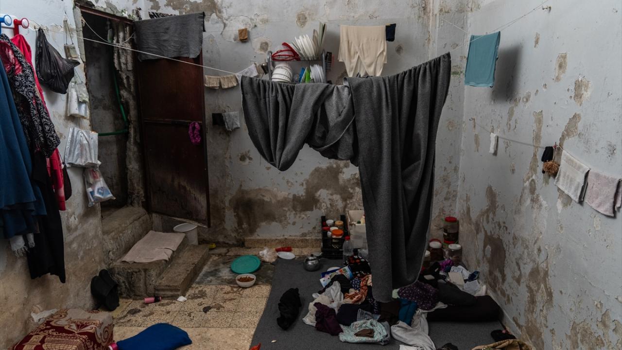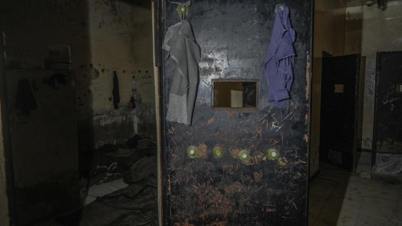 Görüntülerde, devrilen Esed rejiminin askeri istihbarat birimince yönetilen Mezze Askeri Hapishanesi`nde tutulanların kişisel eşyalarının hücrelerde kalması dikkati çekiyor.