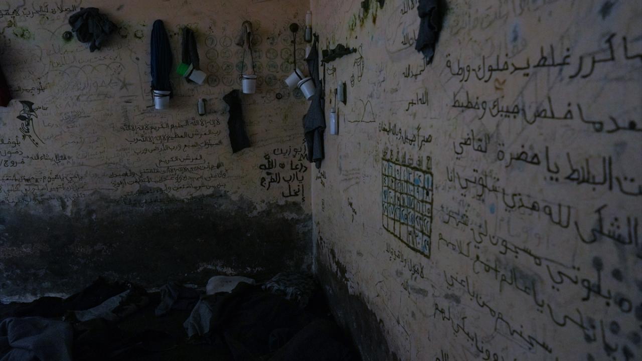 Tutsakların hapishane duvarlarına ayetler yazdığı, resimler ve takvimler çizdiği görüldü. Hücrelerde, yerde oyuncak bebek, tabaklar, yiyecekler de görüntülendi.