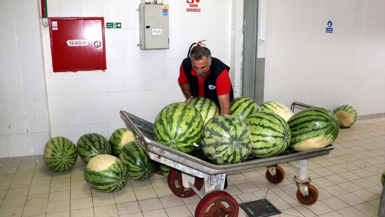 Özellikle Dicle Nehri kenarında yetiştirilen Diyarbakır karpuzu, Yenişehir`deki Et ve Süt Kurumunun soğuk hava deposunda yarışma gününe kadar muhafaza ediliyor.