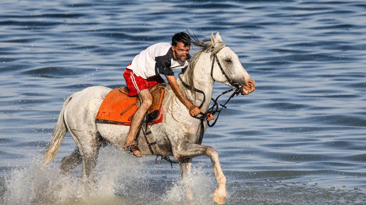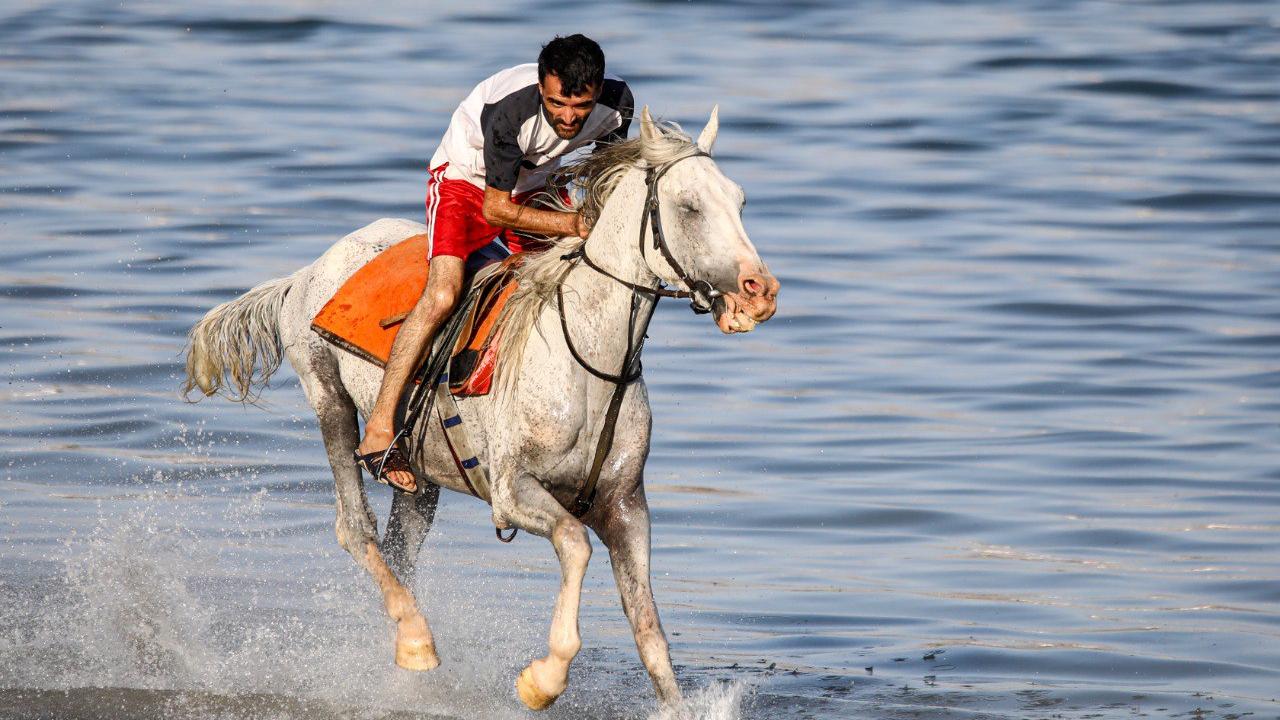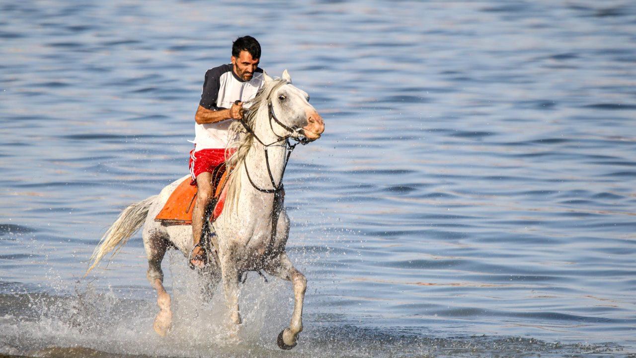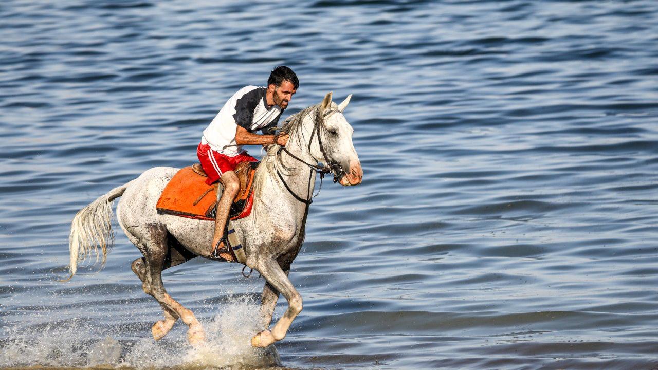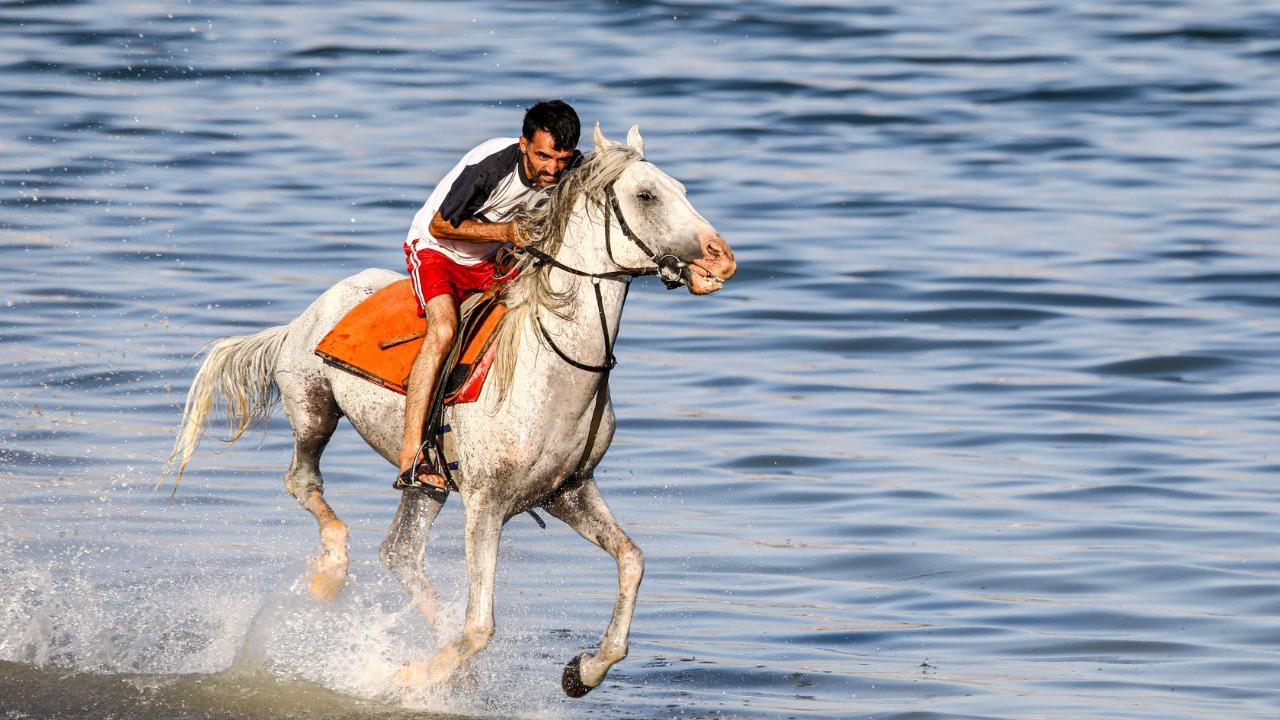Türkiye'deki önemli yarışlarda boy gösteren şampiyon yarış atları, sakatlıkları sonrası getirildikleri Van Gölü'nde eğitmenleri eşliğinde yaptırılan antrenmanlarla form tutuyor.