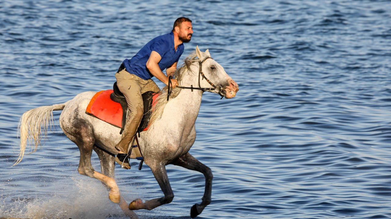 Bayraktar, kumsalda koşturarak form tutmalarını sağladıkları atları, gölün tuzlu ve sodalı suyunda yüzdürüyor. Bayraktar, antrenmanlarla güçlenen atları yeniden hipodromlara gönderiyor.