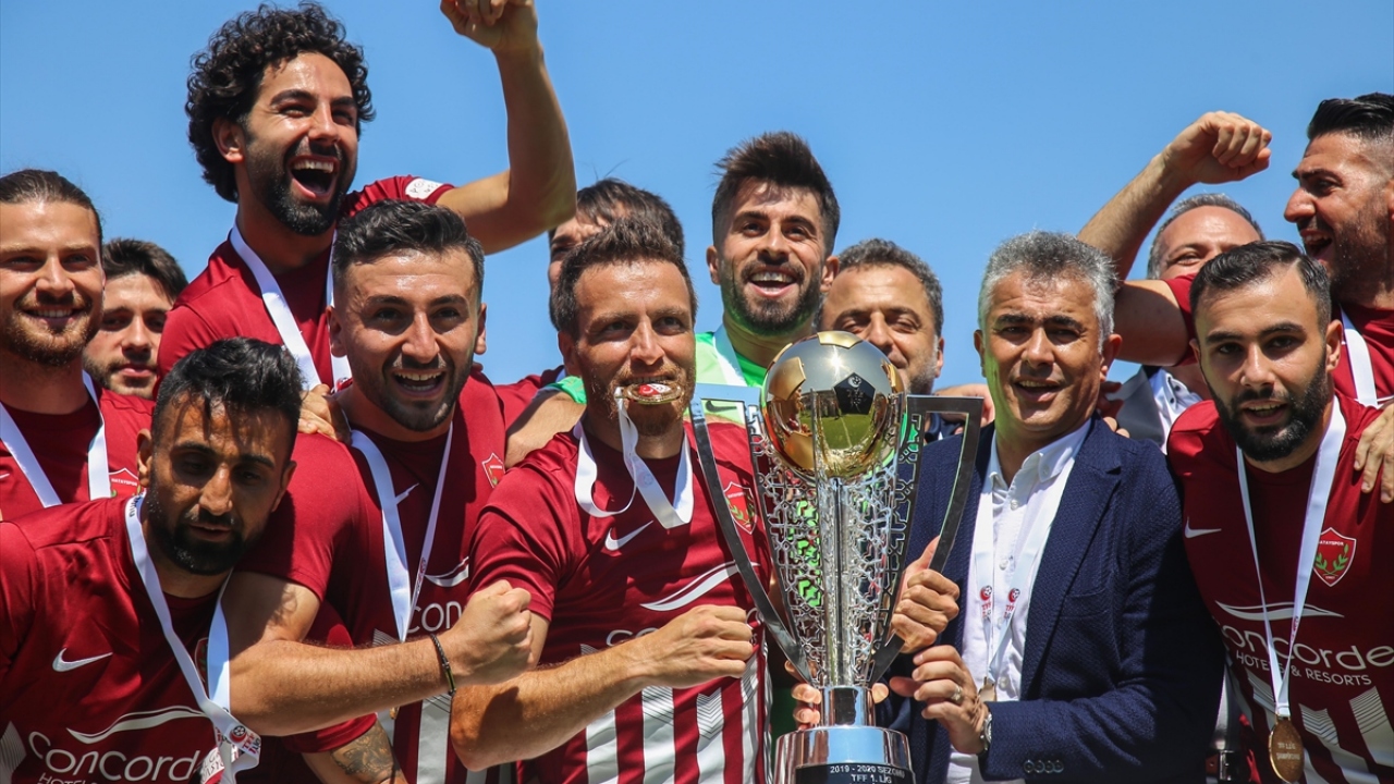 Daha sonra bordo-beyazlı takımın kaptanı Mesut Çaytemel ve teknik direktör Mehmet Altıparmak, TFF yöneticilerinden kupayı teslim alarak takım arkadaşları ve yöneticilerle kaldırdı.
