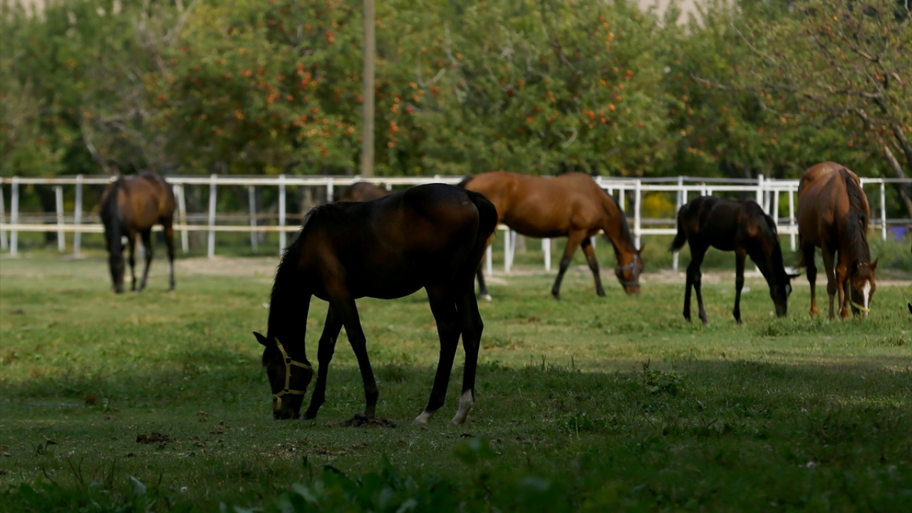Atların günlük bakımlarını titizlikle yaptıklarını anlatan Özsarı, yonca, yulaf ve protein değeri yüksek besinleri tercih ettiklerini söyledi.