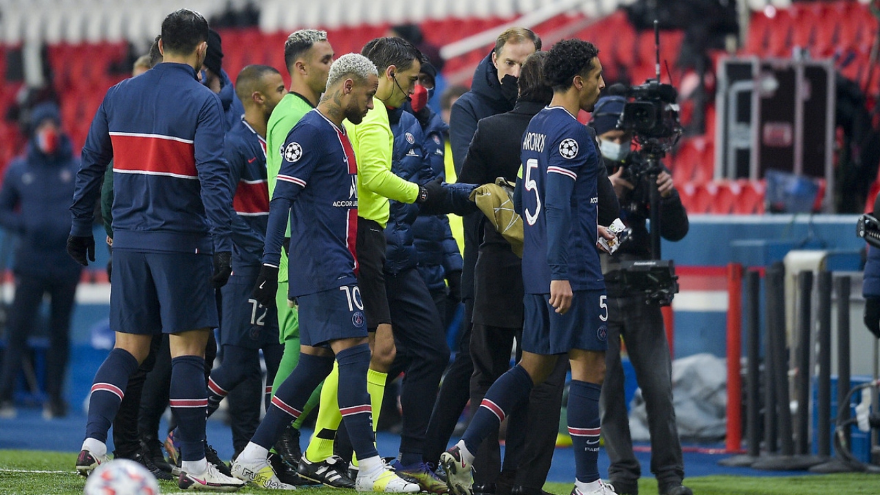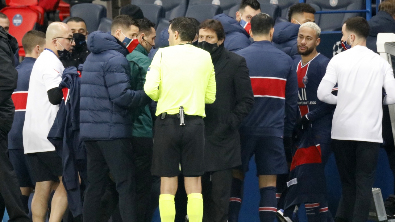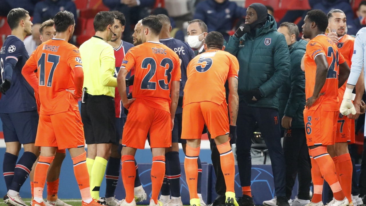 Ardından da Başakşehirli ve Paris Saint Germainli futbolcular sahadan çekilme kararı aldı. Hem Başakşehirli, hem de Parisli futbolcular, bu hakemlerle maça çıkmak istemedi. UEFA yetkilileri de, karşılaşmanın kaldığı yerden yeni hakemlerle bu akşam oynanmasına karar verdi.