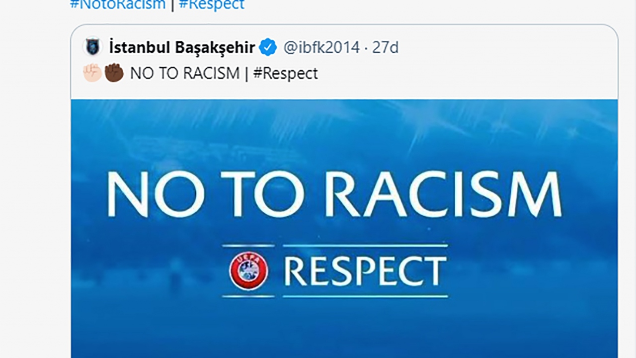 Başakşehir`in Paris Saint-Germain ile oynadığı maçta dördüncü hakemin Pierre Webo`ya kullandığı ırkçı söylem, büyük infial yarattı.