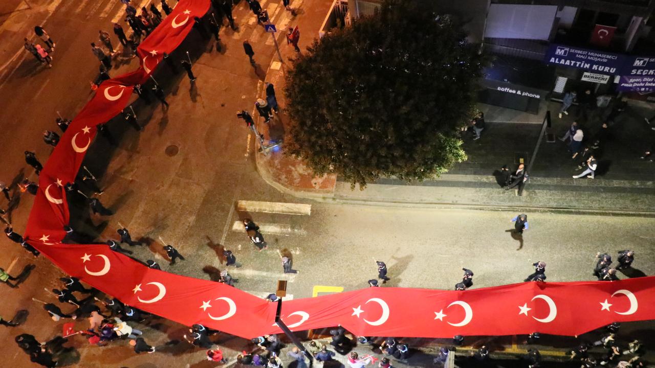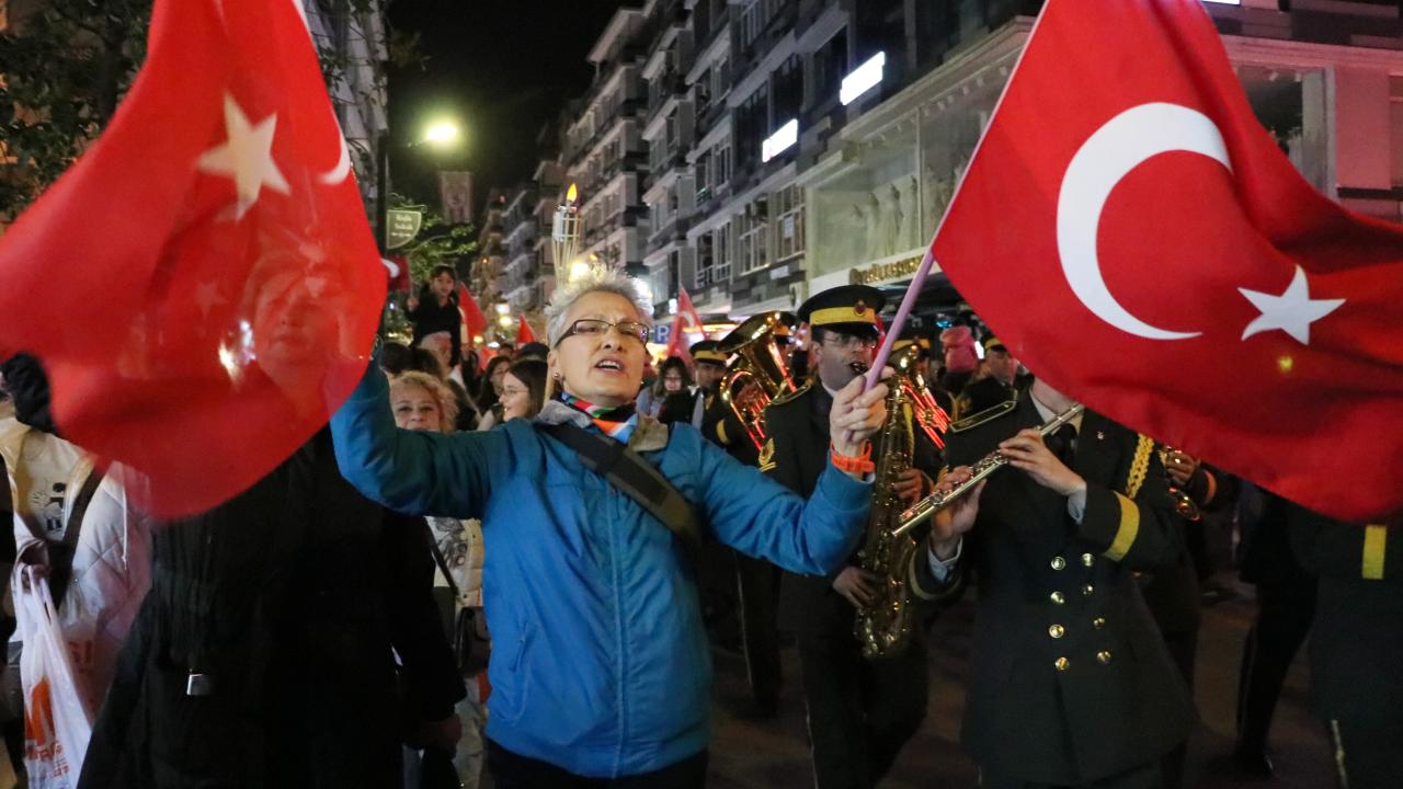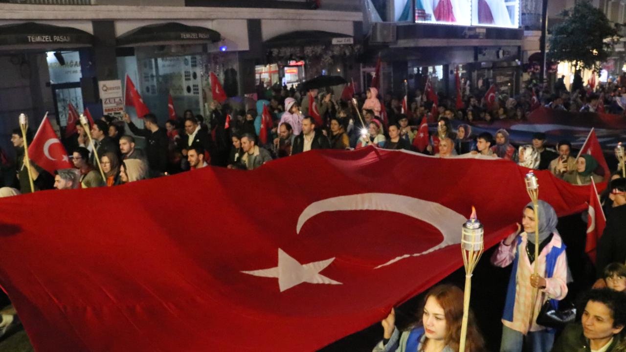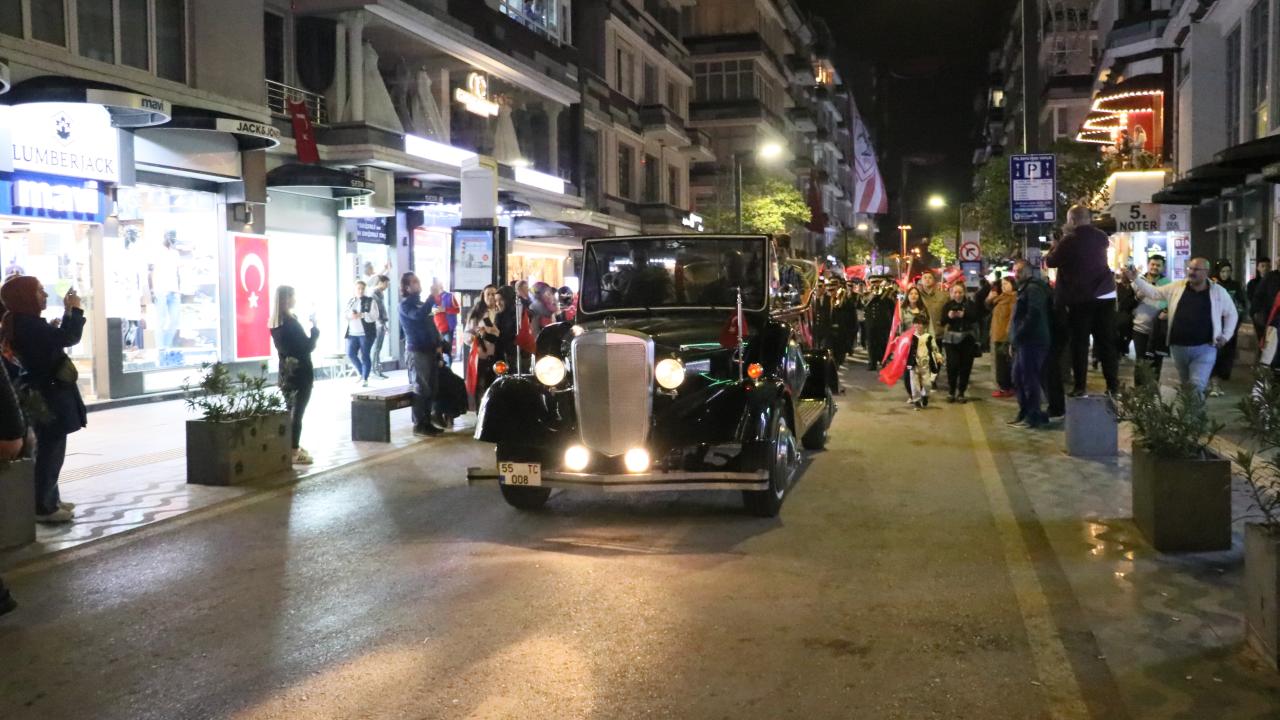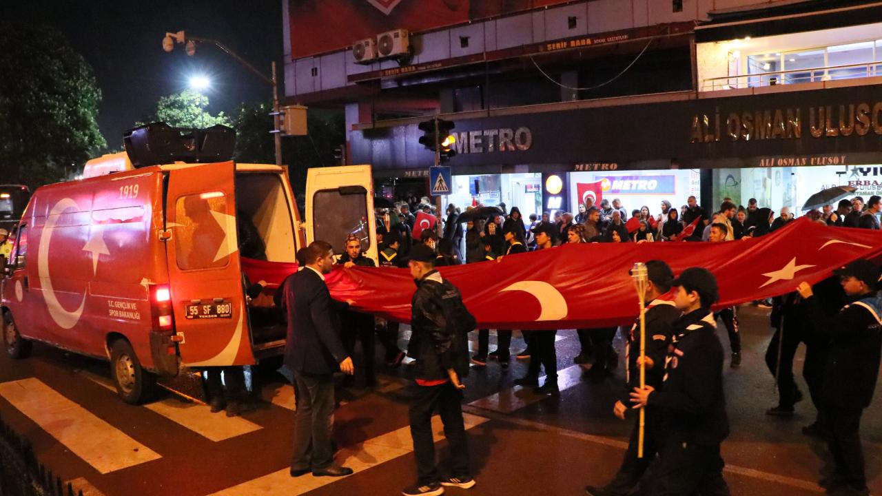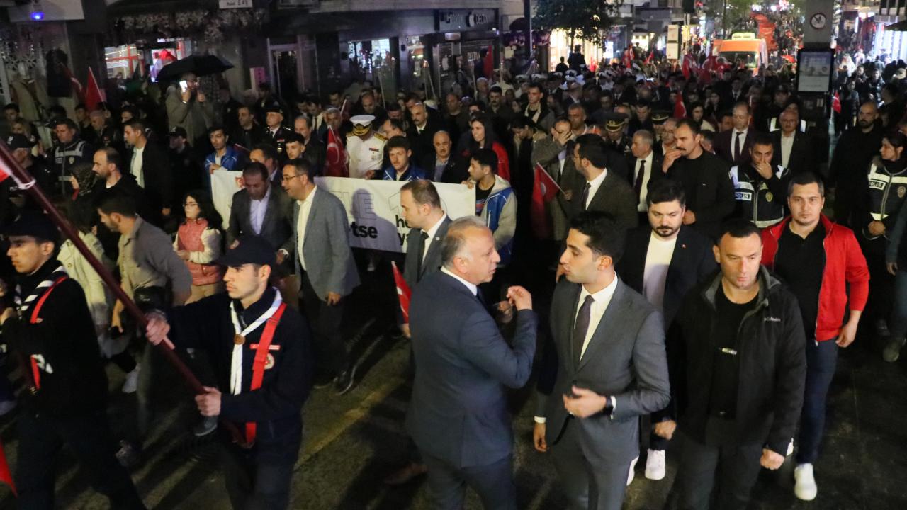 Samsun Gençlik ve Spor İl Müdürlüğünce organize edilen etkinlik kapsamında, DSİ 7. Bölge Müdürlüğü önünde toplanan grup, İstiklal Caddesi`nden Cumhuriyet Meydanı`na kadar ellerindeki fener ve Türk bayraklarıyla yürüdü.