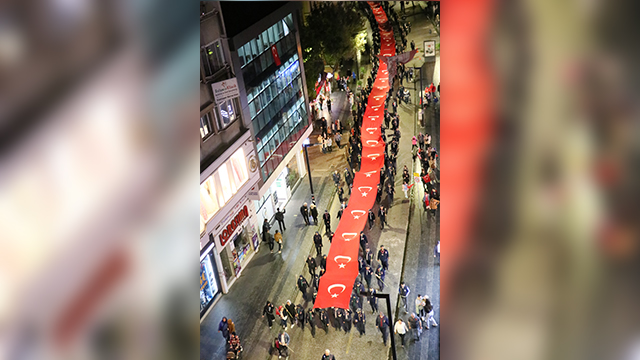 İzciler tarafından 1919 metre uzunluğundaki Türk bayrağı açılarak taşındı.