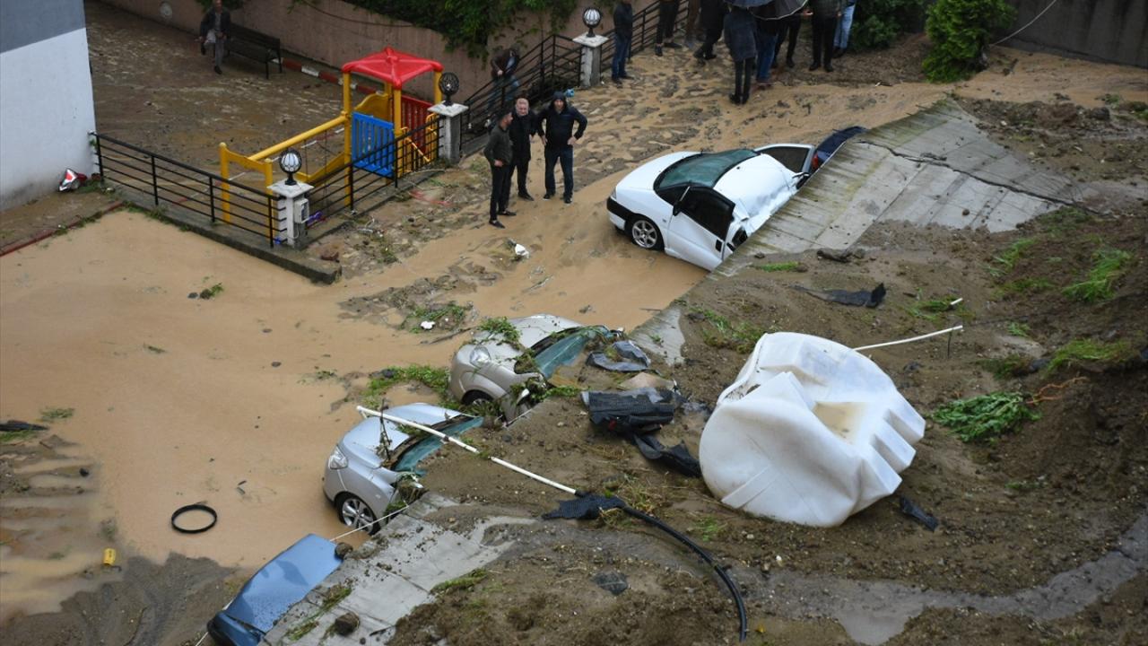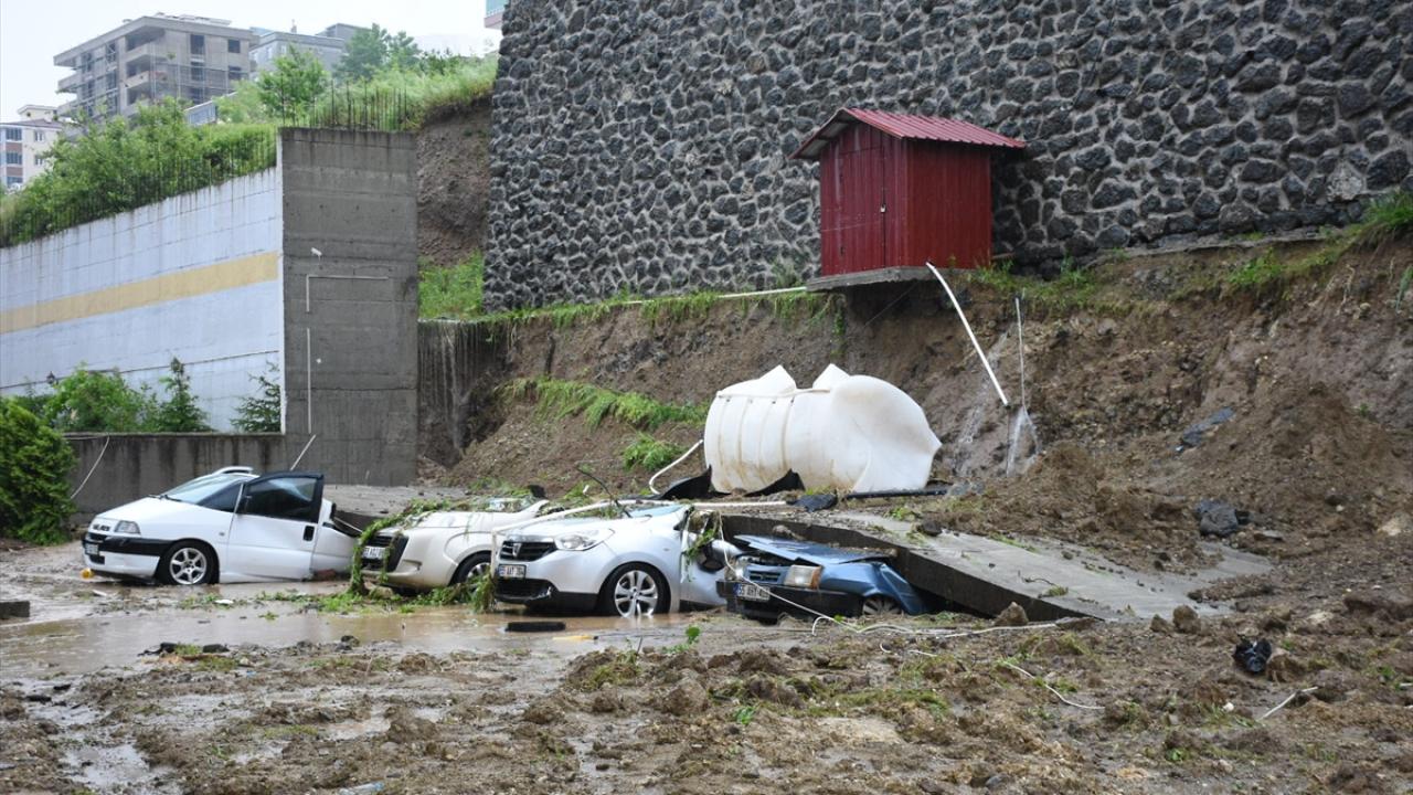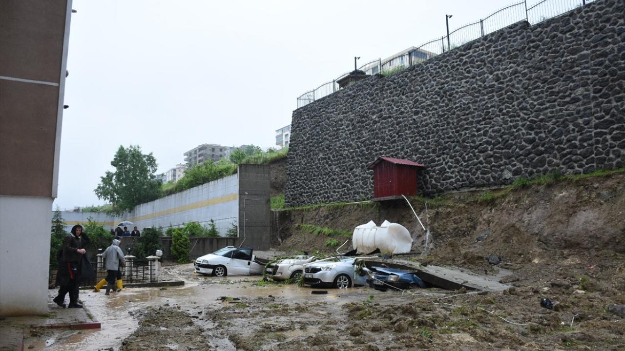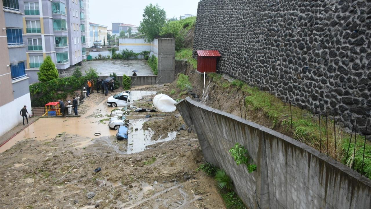 Şiddetli yağışın etkili olduğu kentte, Uludağ Mahallesi Mahmudiye Caddesi`nde bir apartmanın otoparkının istinat duvarı çöktü.