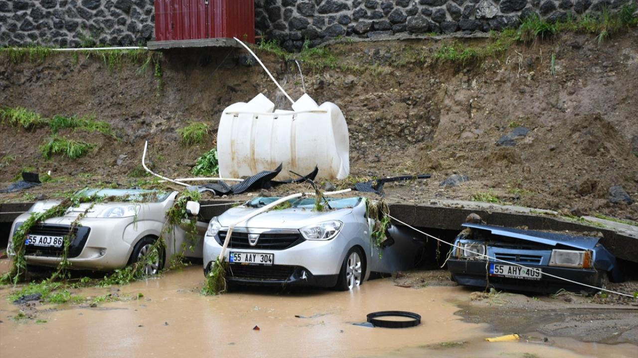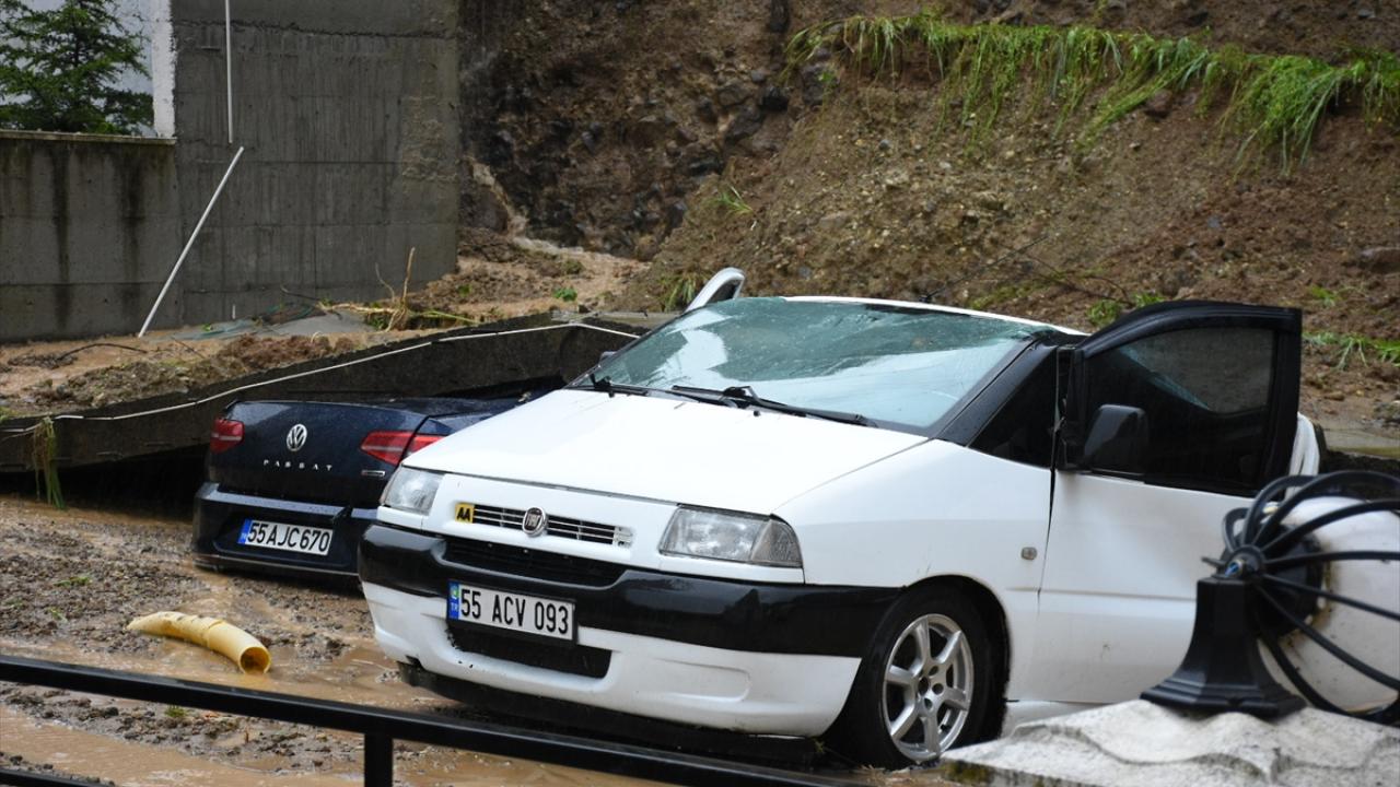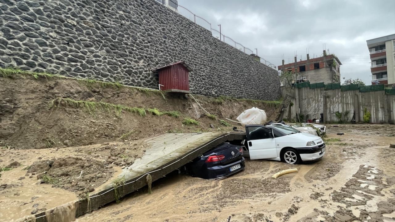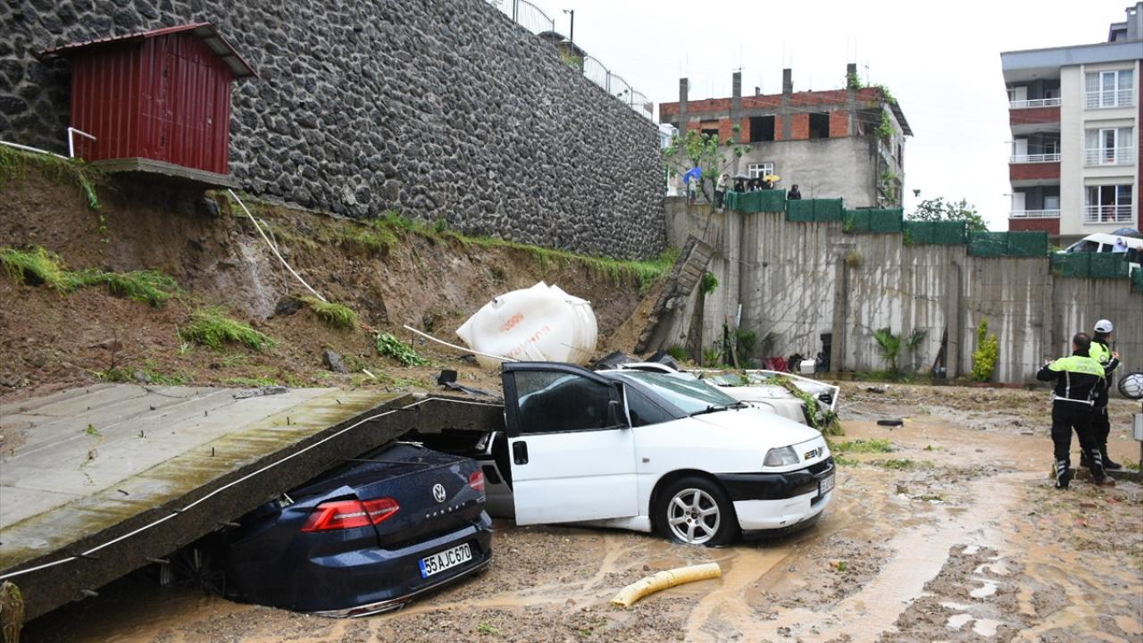Şiddetli yağışın etkili olduğu kentte, Uludağ Mahallesi Mahmudiye Caddesi`nde bir apartmanın otoparkının istinat duvarı çöktü.