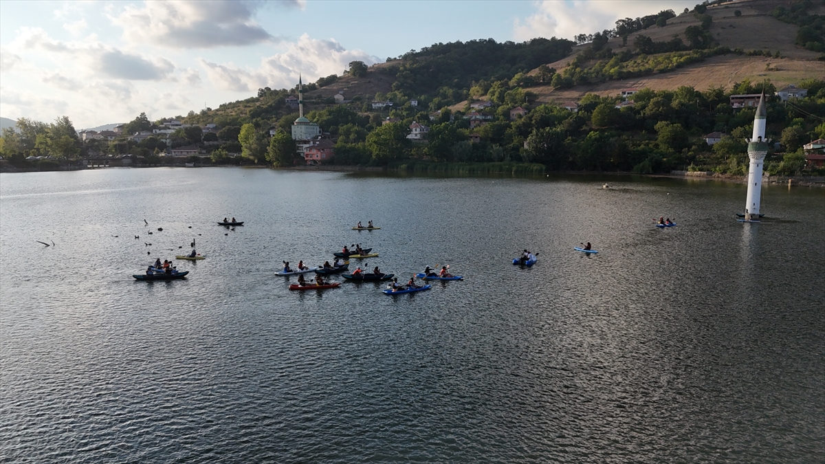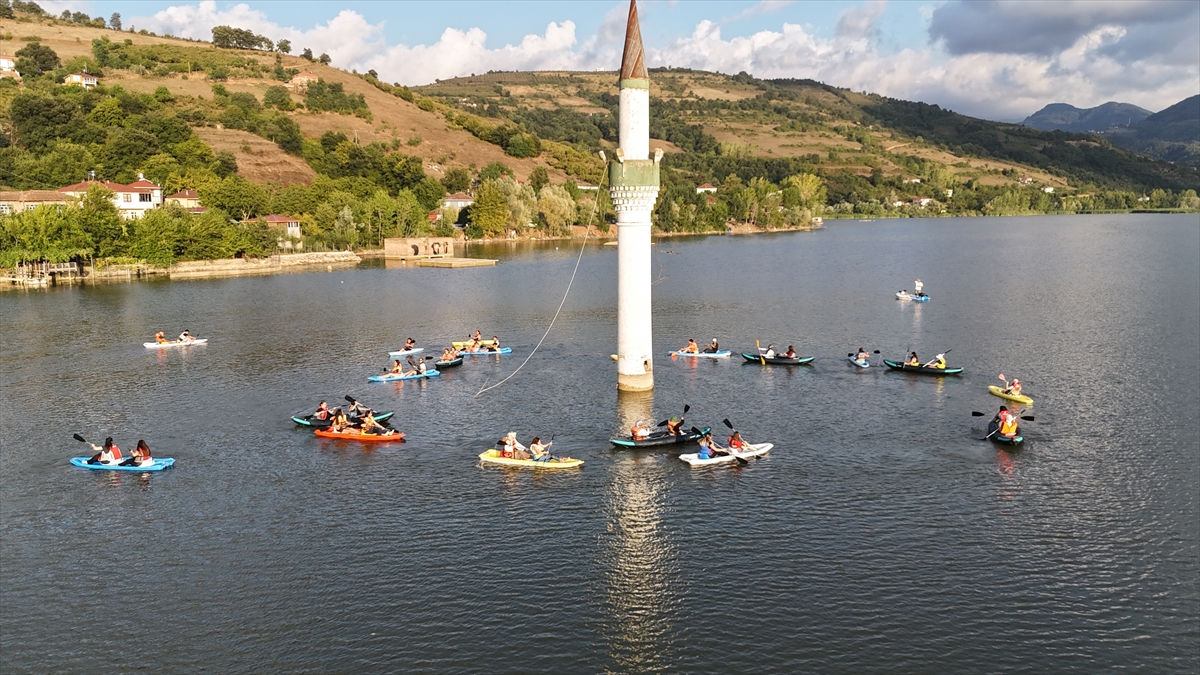 Batık Minare çevresinde düzenlenen kano gösterileri ve su sporları etkinlikleri, çevre il ve ilçelerden gelen yerli ve yabancı turistlerin ilgisini çekiyor.