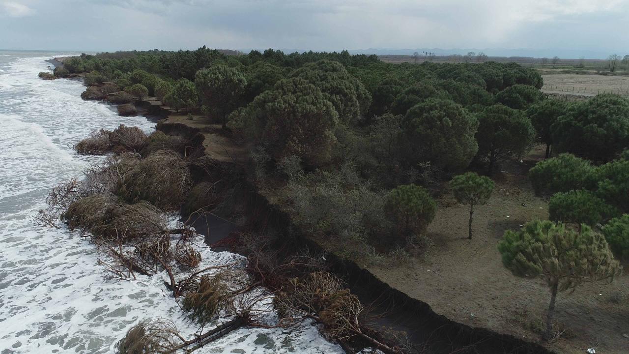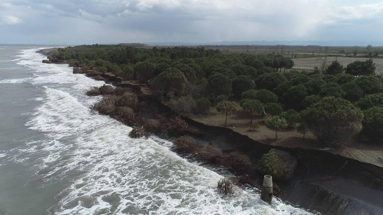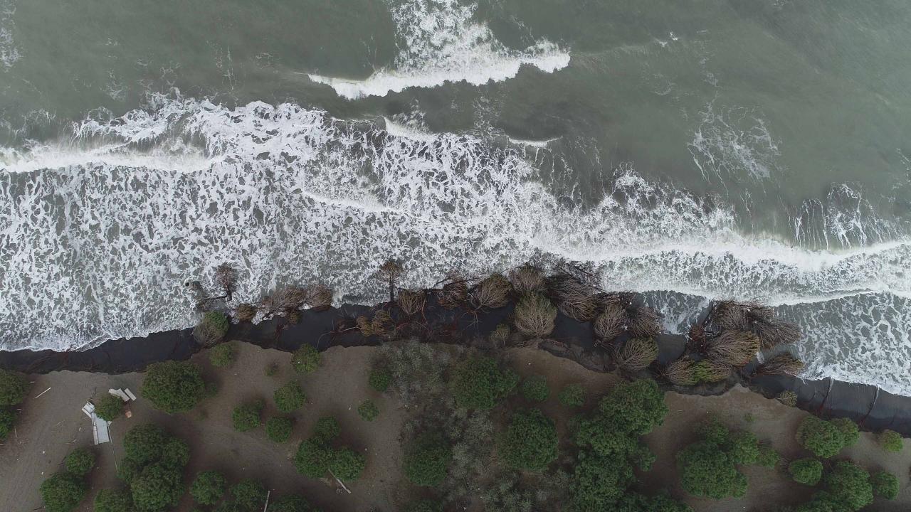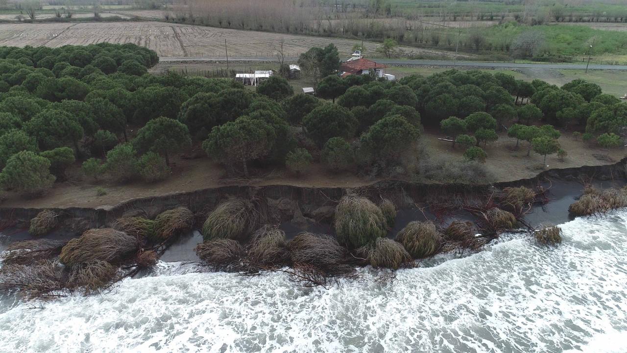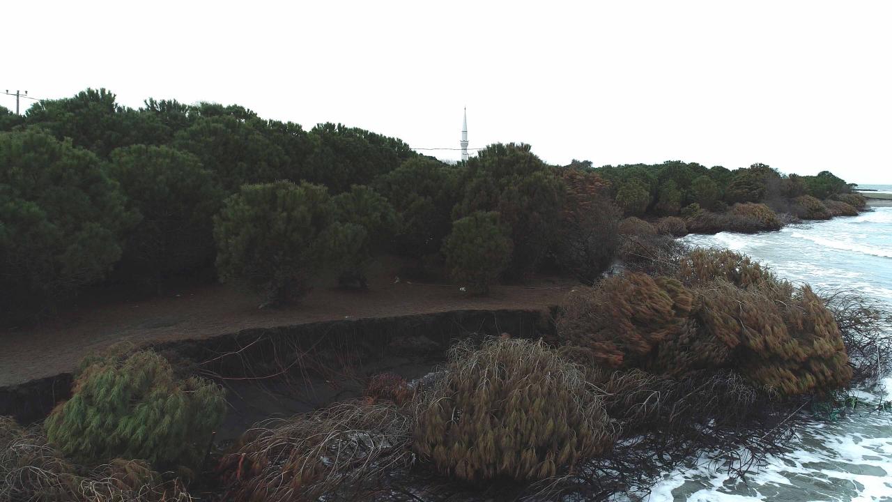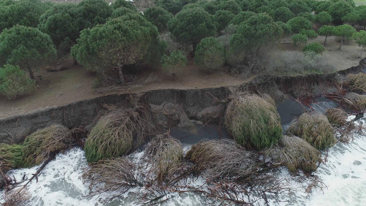 Dalgaların kıyı şeridini aşındırması dron ile görüntülendi.