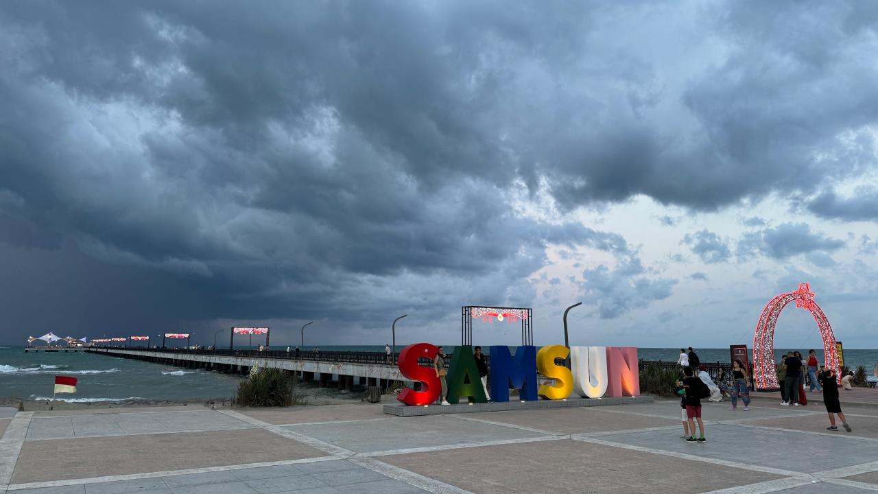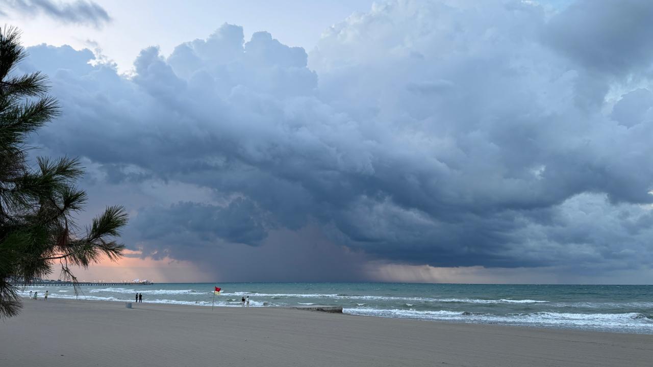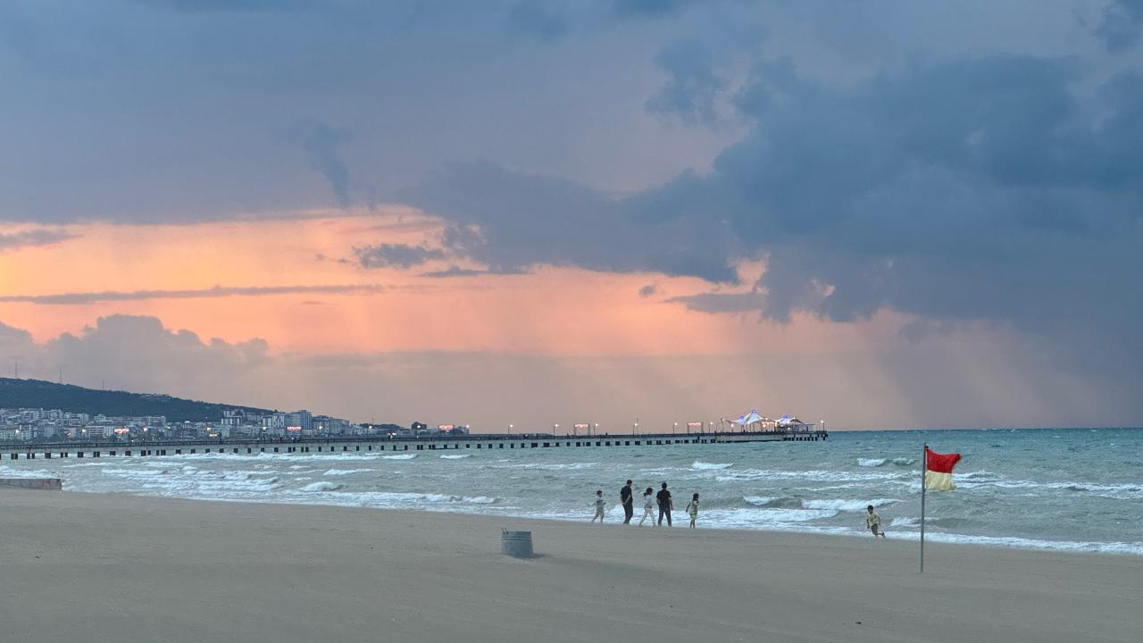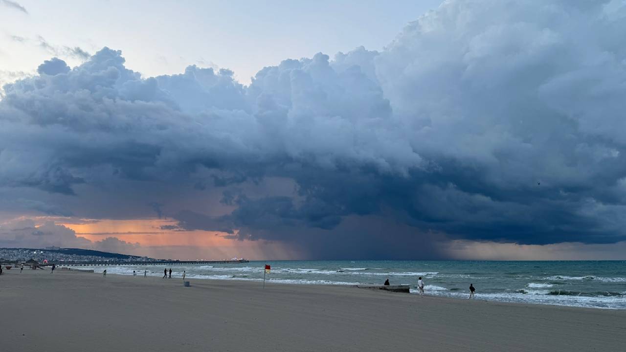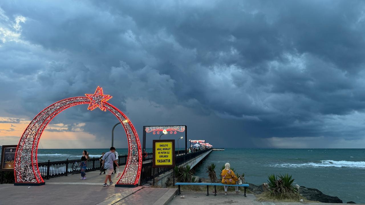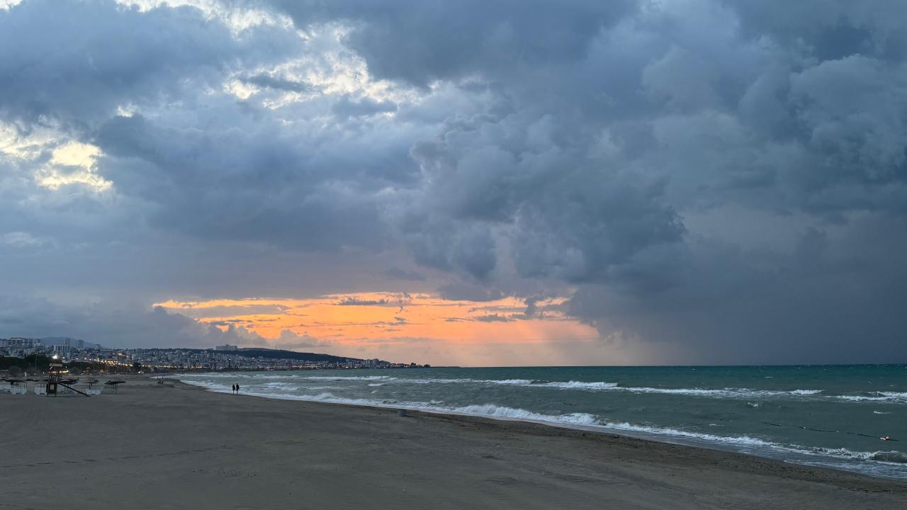 Samsun'un Atakum ilçesinde akşam saatlerinde gökyüzünde oluşan kızıllık ve yağmur bulutları güzel görüntü oluşturdu.