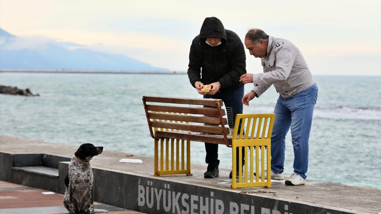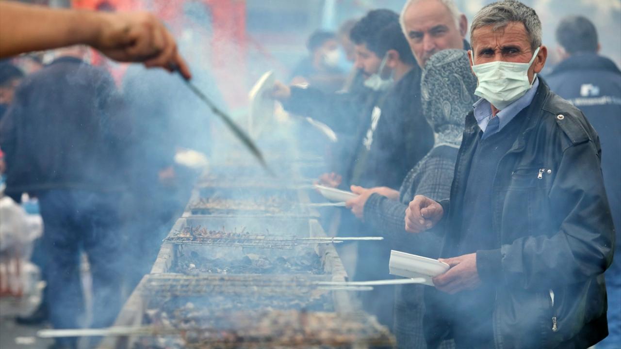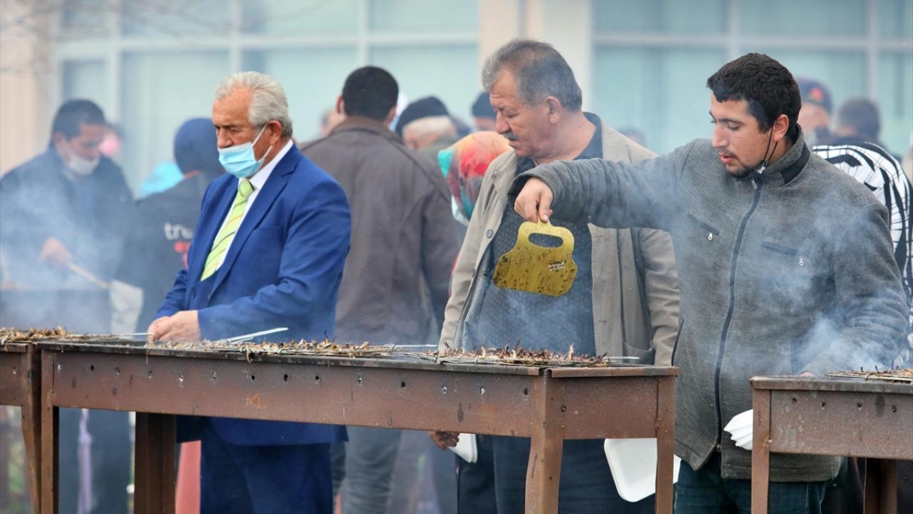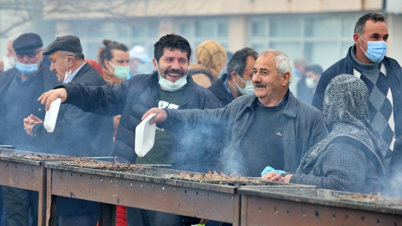 Temizlenen hamsiler, vatandaşlar ve belediye personelince metrelerce kurulan mangallarda pişirilerek dağıtıldı.