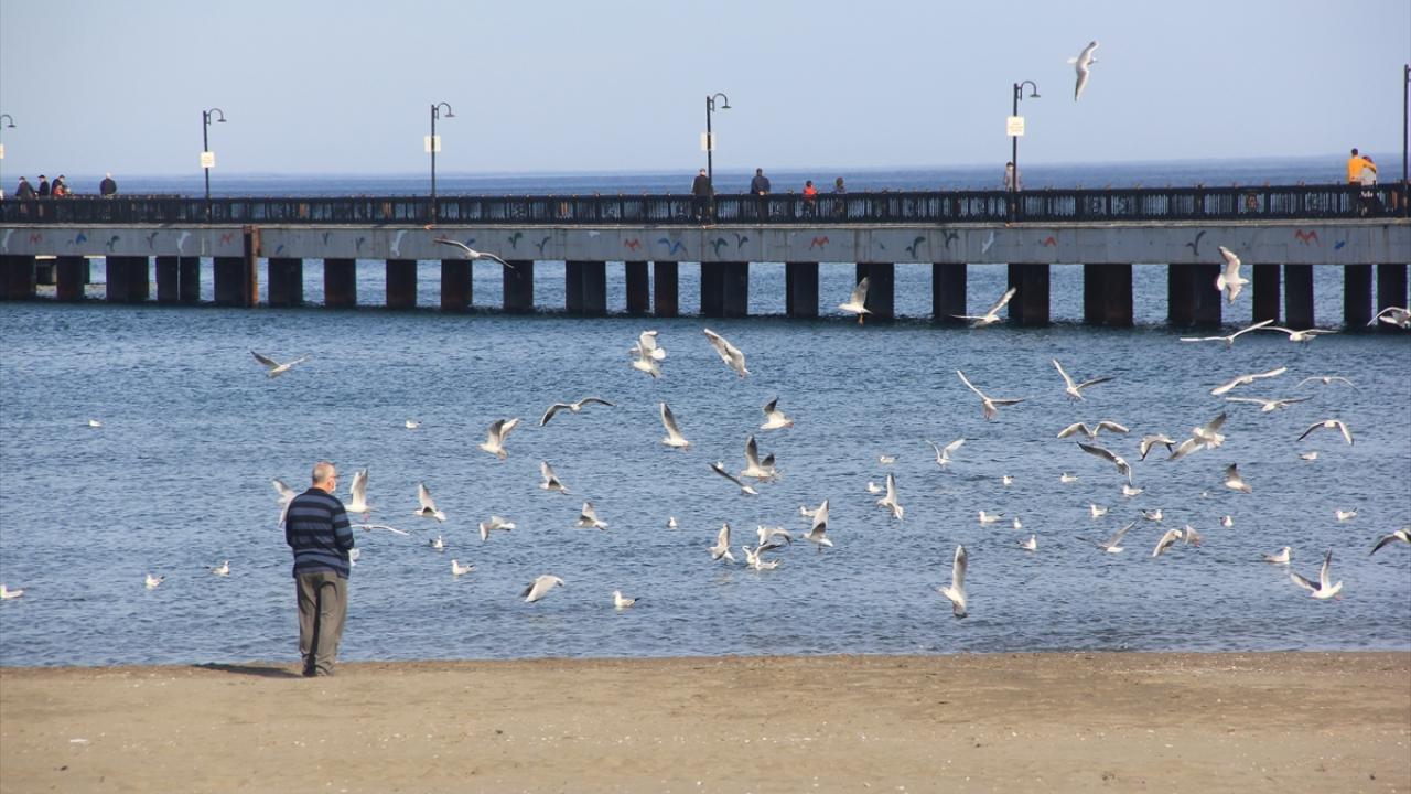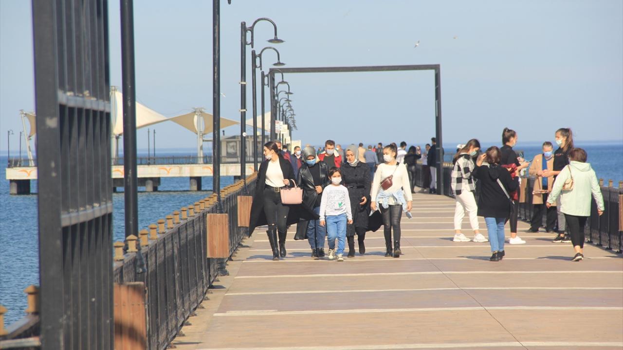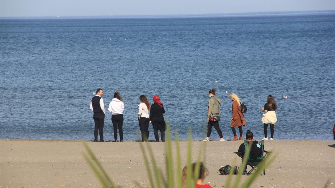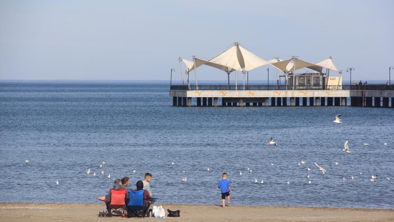 Karadeniz kenti Samsun'da hava sıcaklığı yükselince vatandaşlar sahilde güneşli havanın keyfini çıkardı.