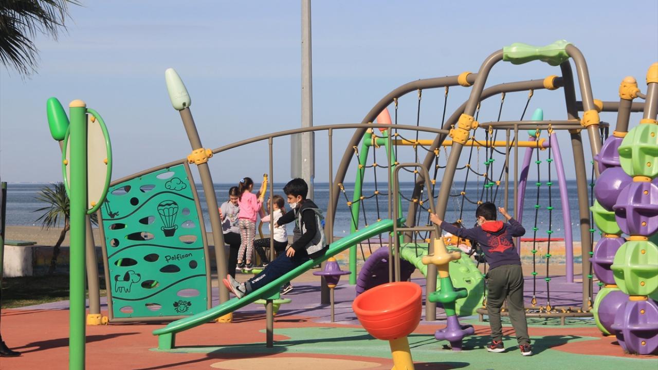 Vatandaşlar sahilde bisiklet sürdü, kumsalda sosyal mesafeye uyarak dinlendi. Çocuklar da kendilerine tanınan sürede parklarda oyun oynadı.