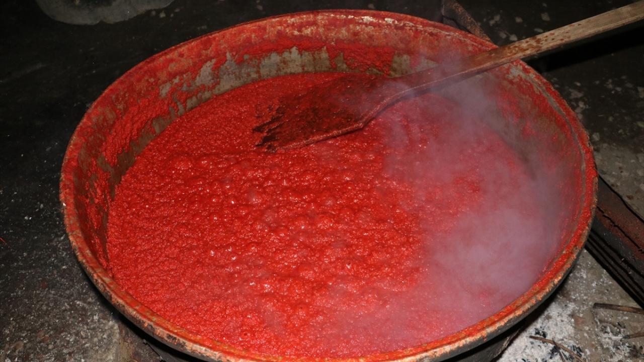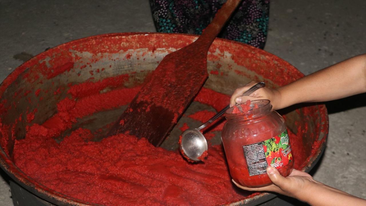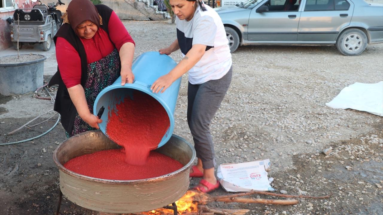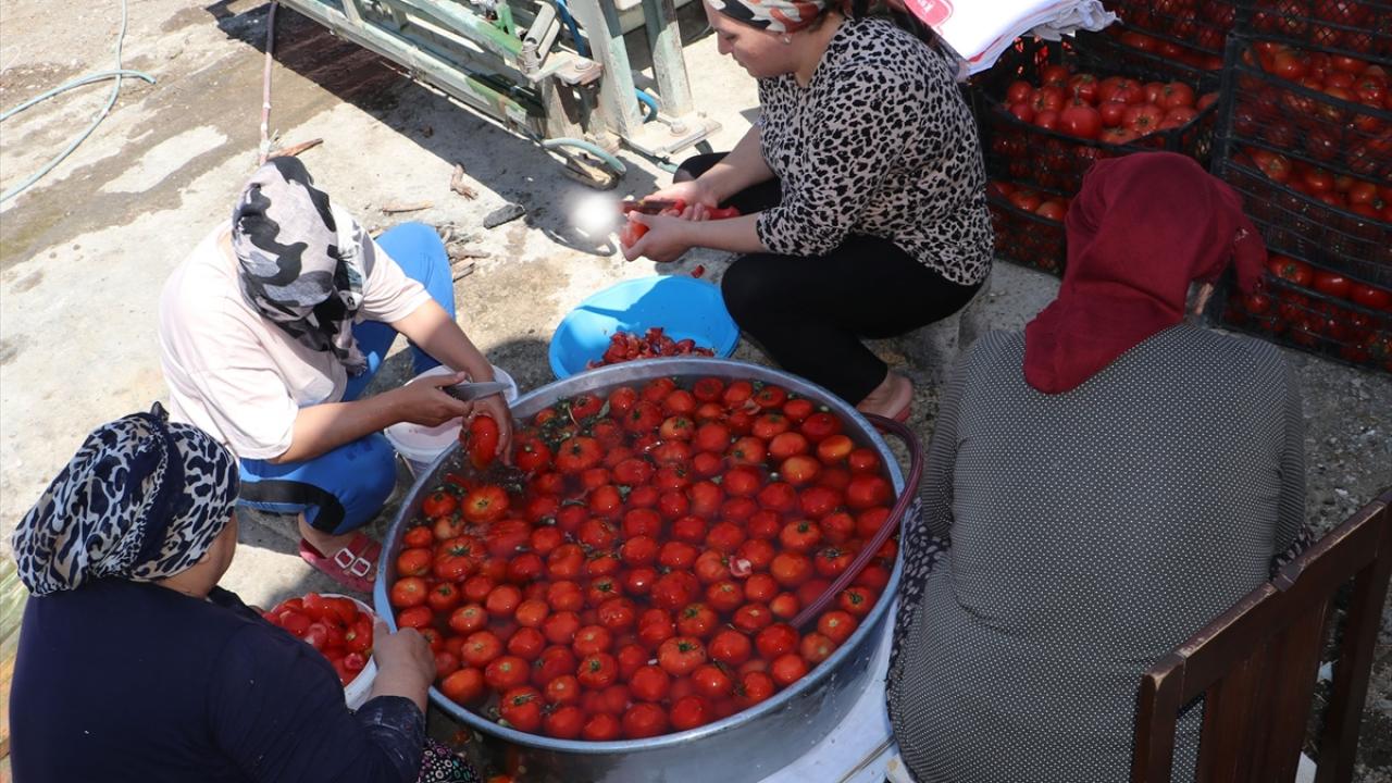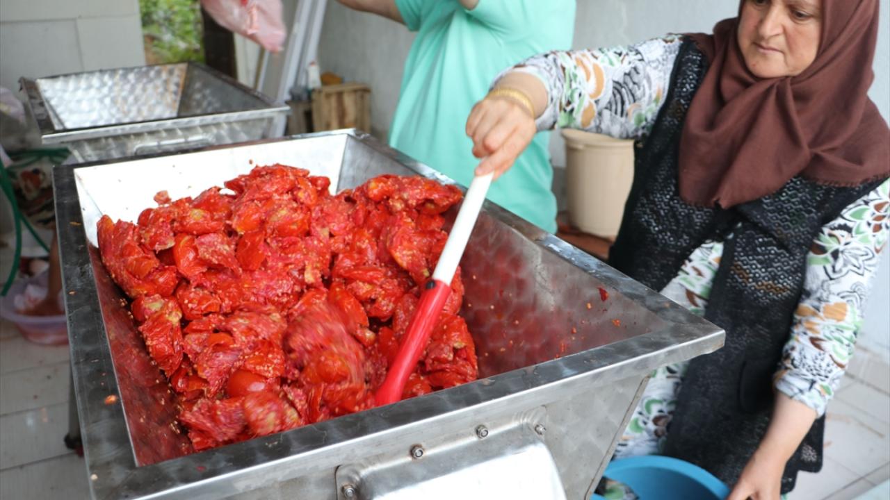 Aldıkları domatesi ilk olarak doğrayıp tuzlayarak üç gün kadar hem suyunun süzülmesi hem de ekşimesi için çuvallarda beklettiklerini anlatan Şimşek, "Daha sonra ise bu domatesleri makineden geçirip püre haline getirerek yaklaşık 3- 4 saat kaynatıyoruz. Yavaş yavaş dibini tutturmadan kaynatıyoruz." diye konuştu.