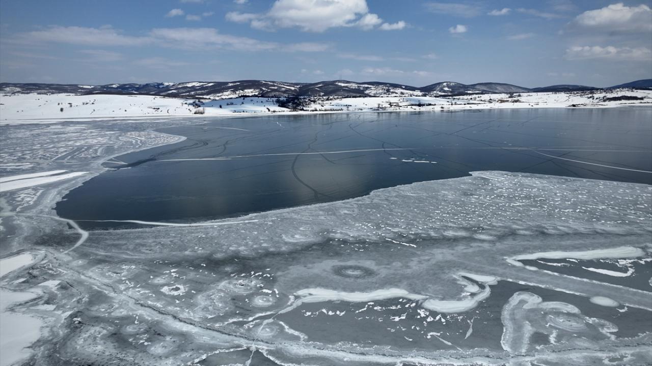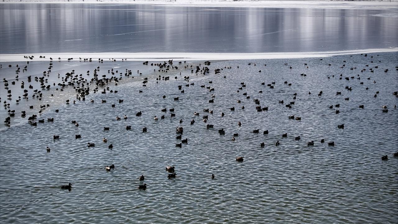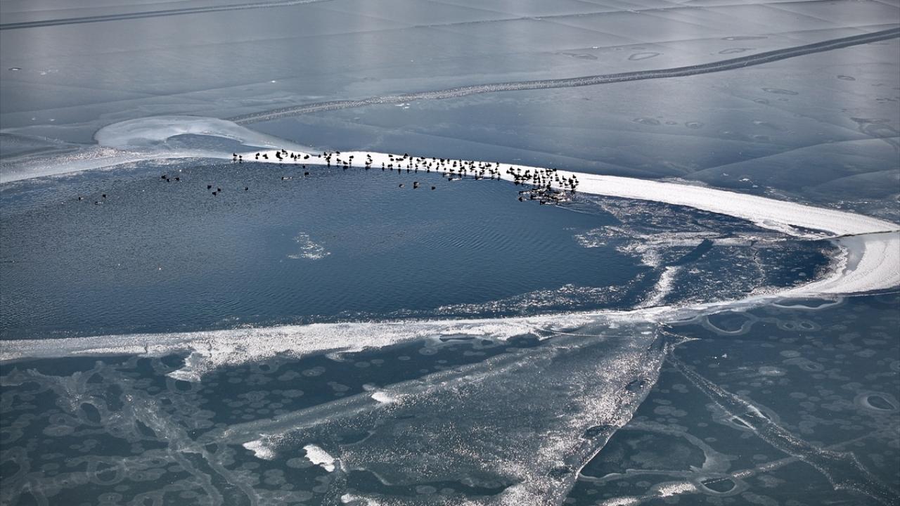 Sıcaklığın sıfırın altında 5 dereceye kadar düştüğü bölgede gölün yüzeyinin büyük bölümü dondu.