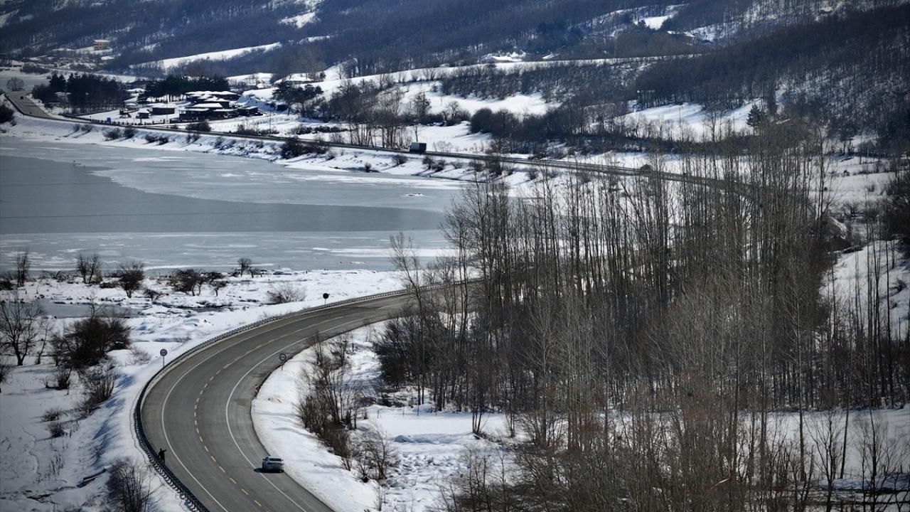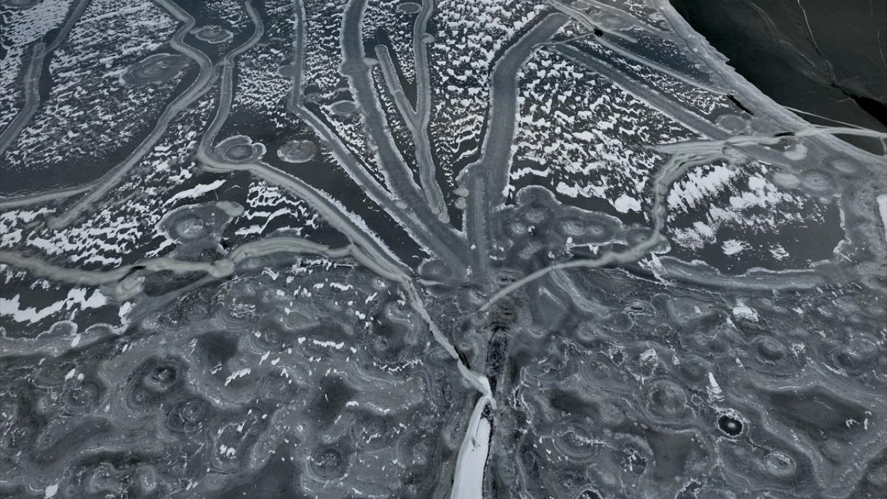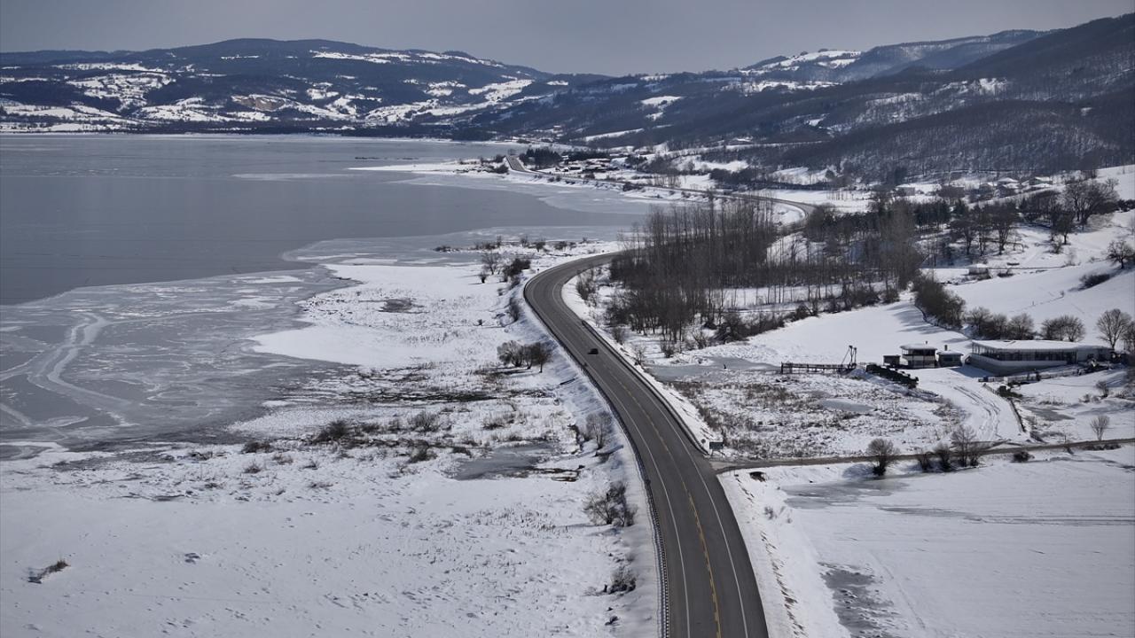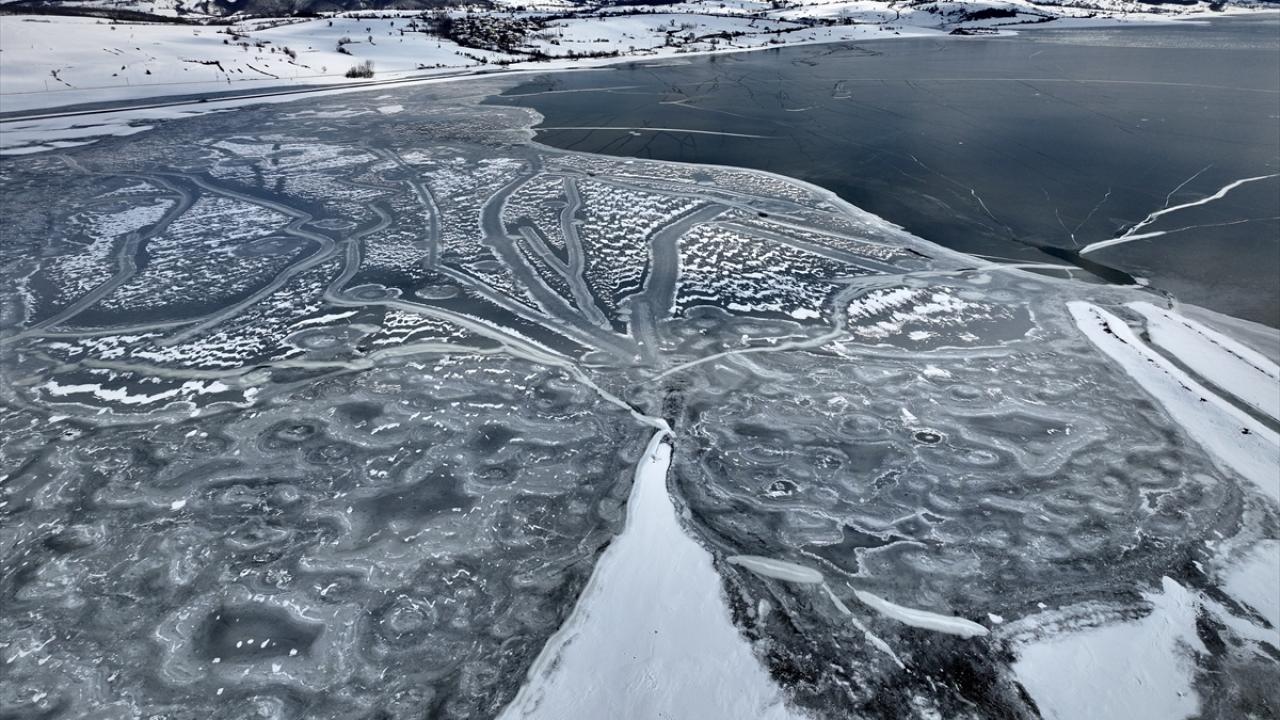 Sıcaklığın sıfırın altında 5 dereceye kadar düştüğü bölgede gölün yüzeyinin büyük bölümü dondu.