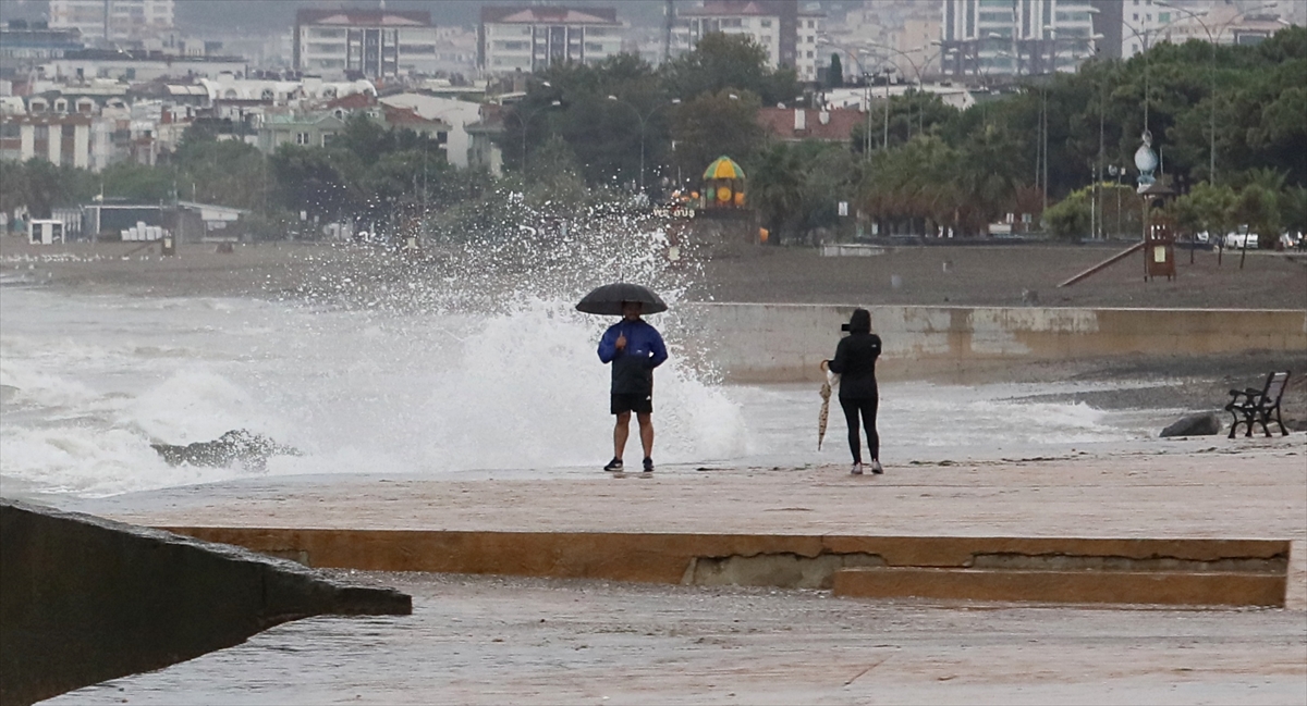 Karadeniz`de de Atakum sahilinde 2 metreye ulaşan dalgalar oluştu. Yağışın gün boyunca aralıklarla devam etmesi bekleniyor.