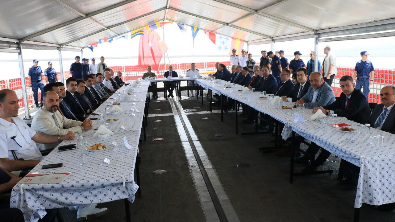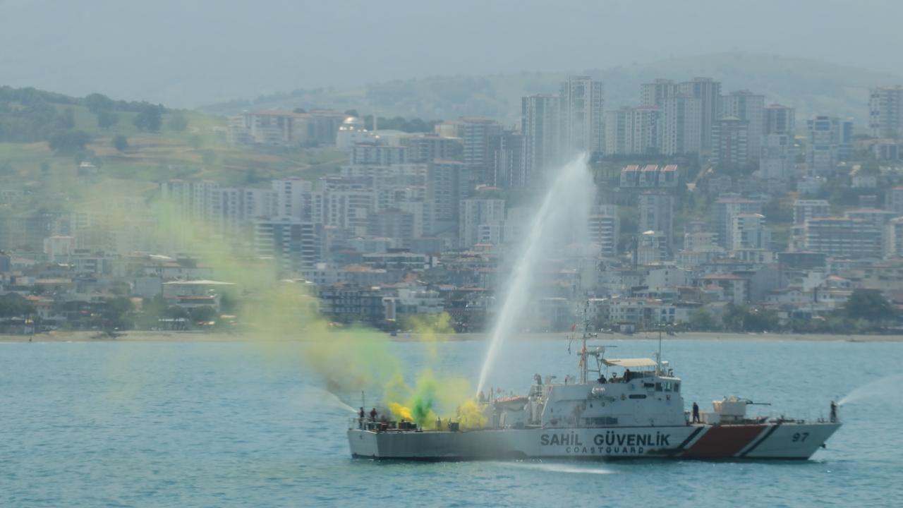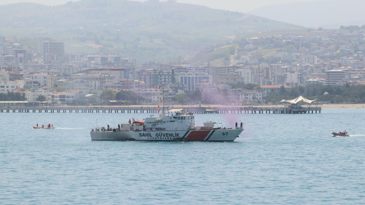 Denizdeki kazazedelerin kurtarılarak yangına müdahale edilmesi heyecanla izlendi. Tatbikatı TCSG DOST 701 gemisinden takip eden Samsun Valisi Zülkif Dağlı, kortej geçişi yapan ekipleri selamladı.