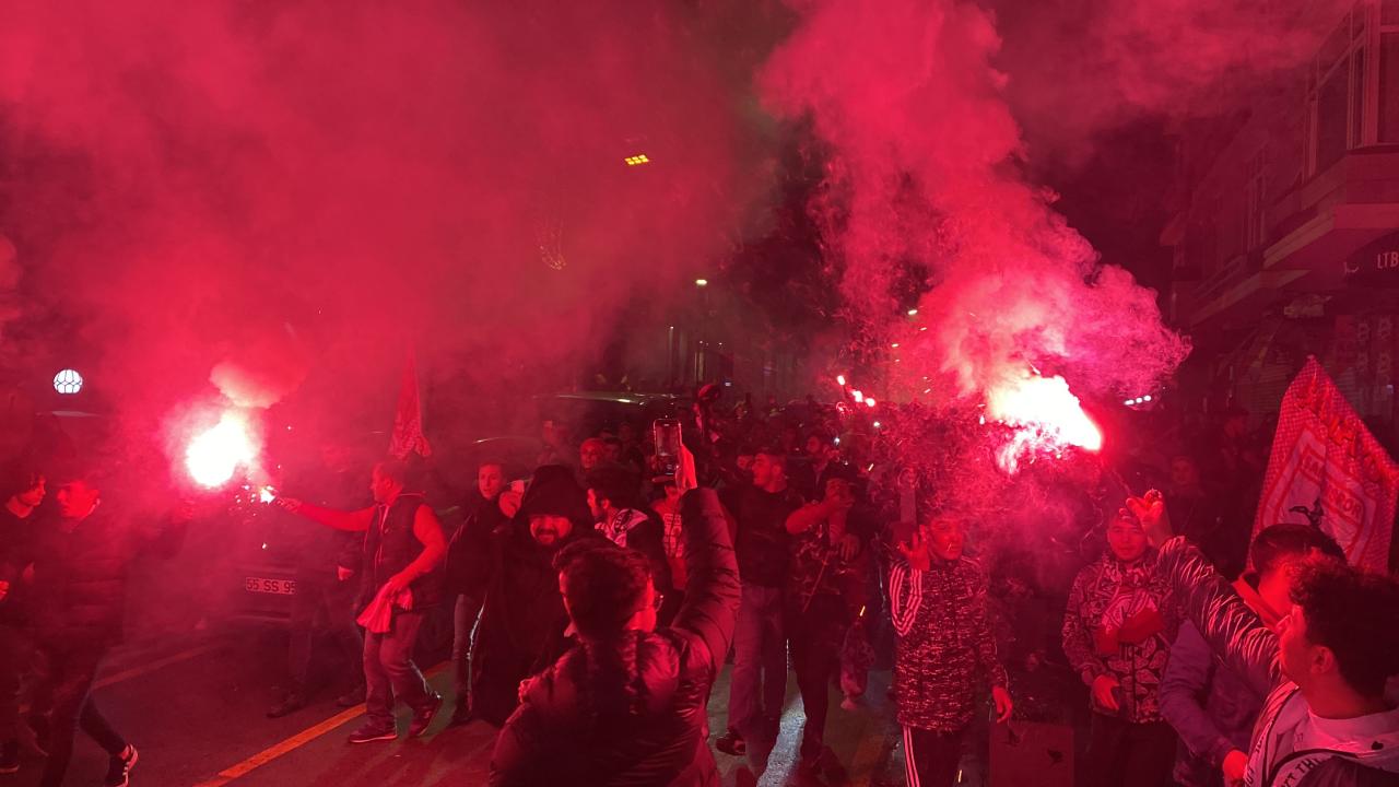 Çiftlik Caddesi`nde meşaleler yakan taraftarlar, şarkılar ve marşlar söyledi.