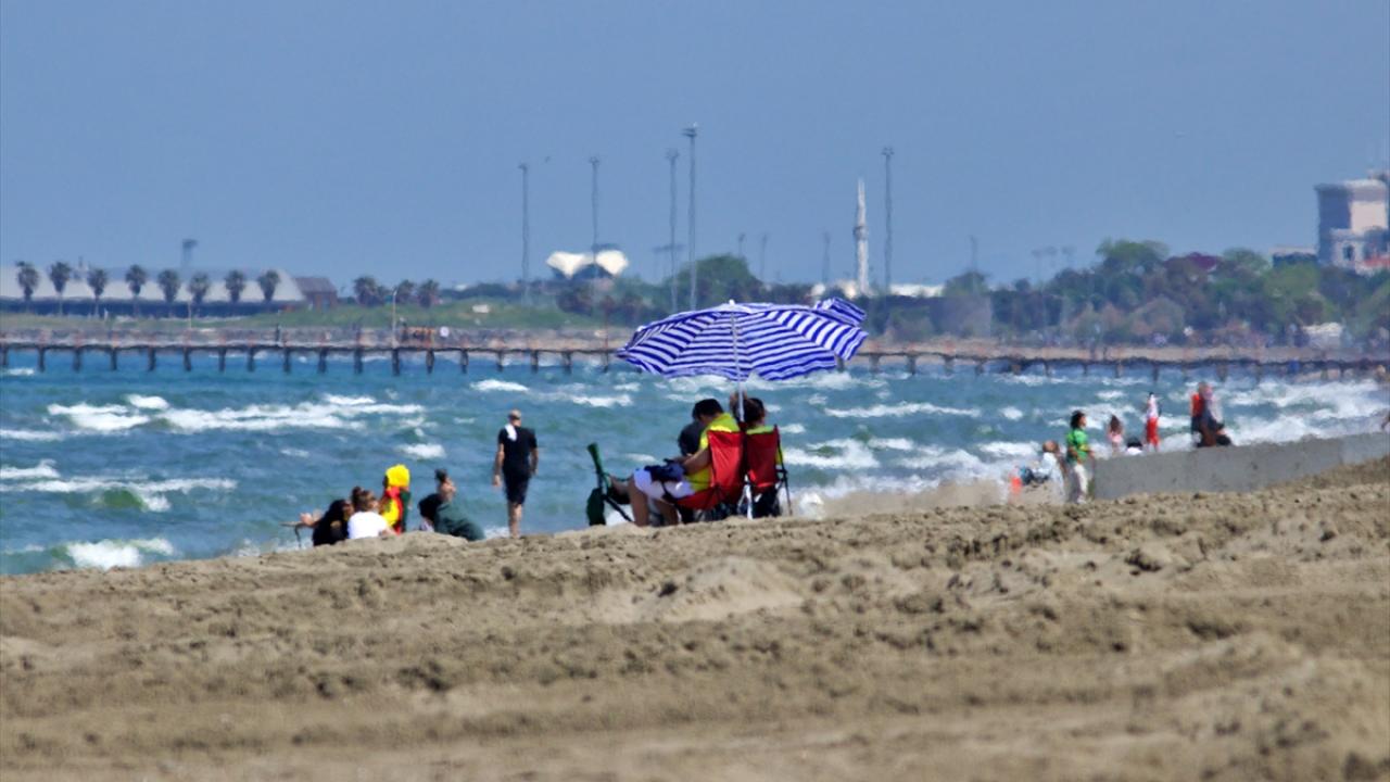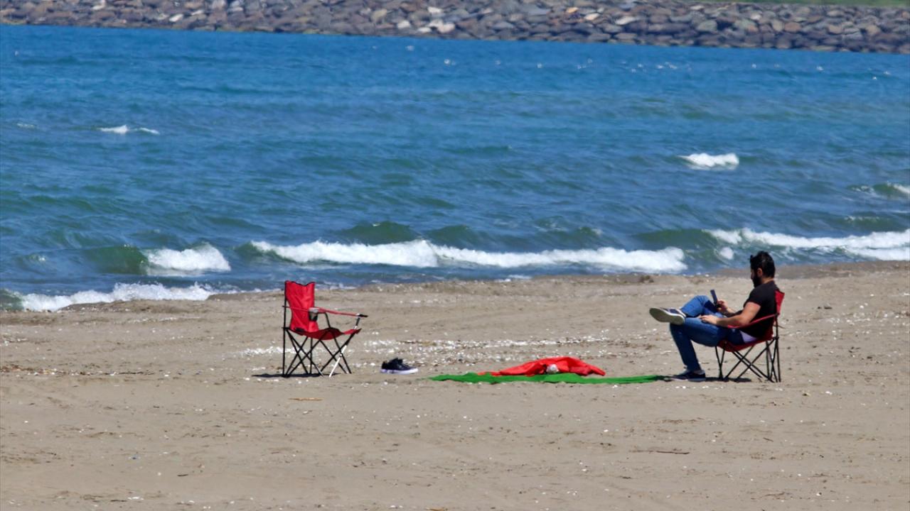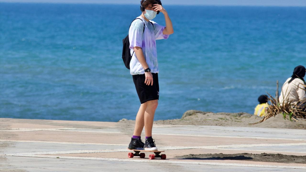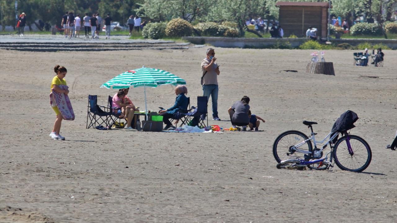 Hava sıcaklığının 25 dereceyi bulduğu kentte bazı vatandaşlar sahilde bisiklet sürdü, kumsalda sosyal mesafeye uyarak dinlendi. Çocuklar da ebeveynleri ile parklarda oyun oynadı.
