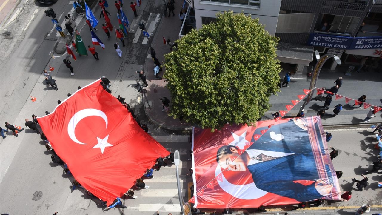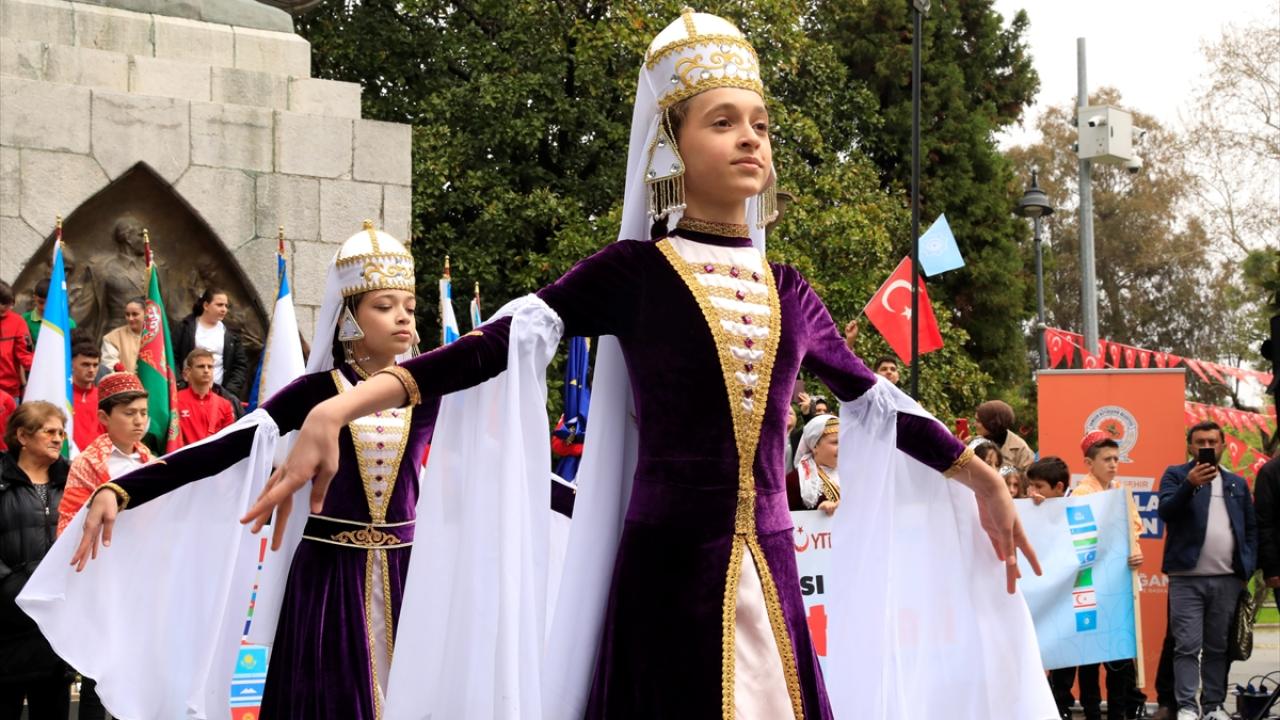 Çiftlik Caddesi`nden Cumhuriyet Meydanı`ndaki Onur Anıtı`na kadar süren yürüyüşte, zaman zaman dans gösterileri de sunuldu. Misafir öğrencilerin geleneksel kıyafetleriyle yaptığı danslar ilgi gördü.