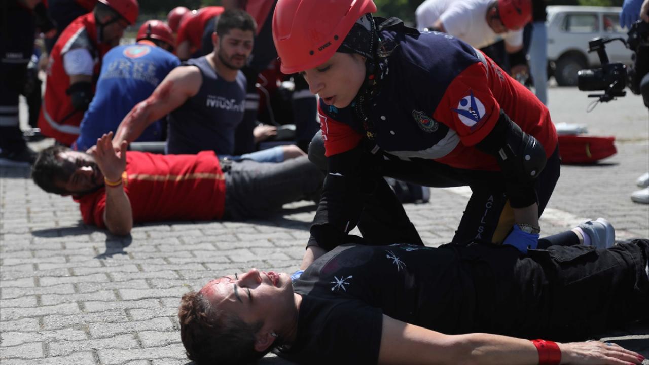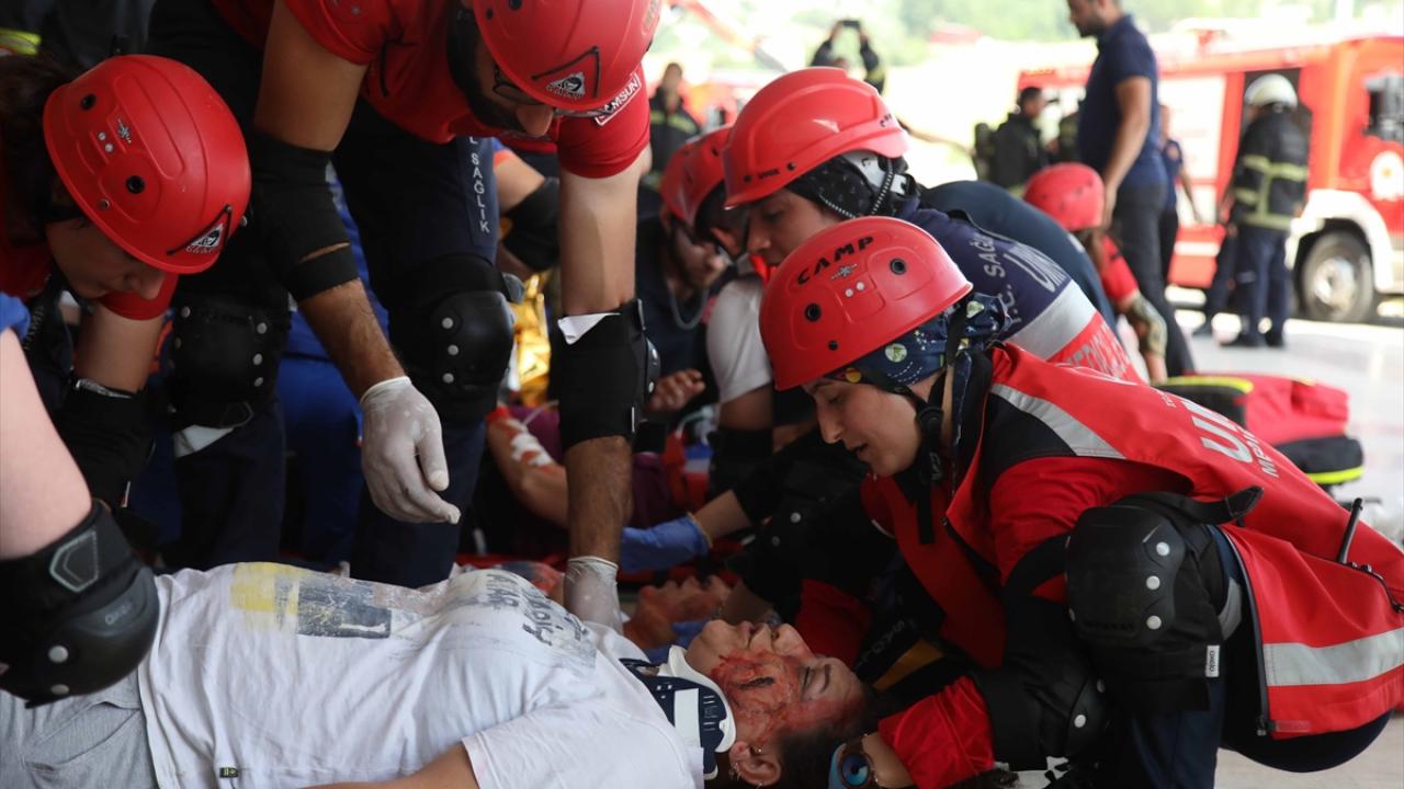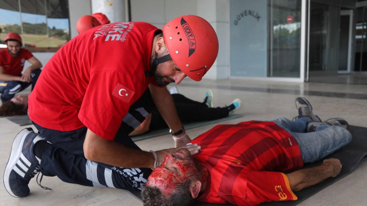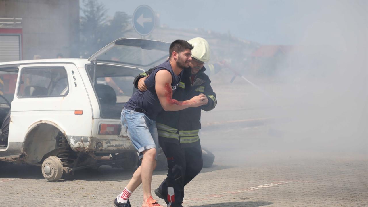 Tatbikat senaryosunda yaralıları canlandıran personel ise kostüm, makyaj ve oyunculukları ile gerçeği aratmadı.