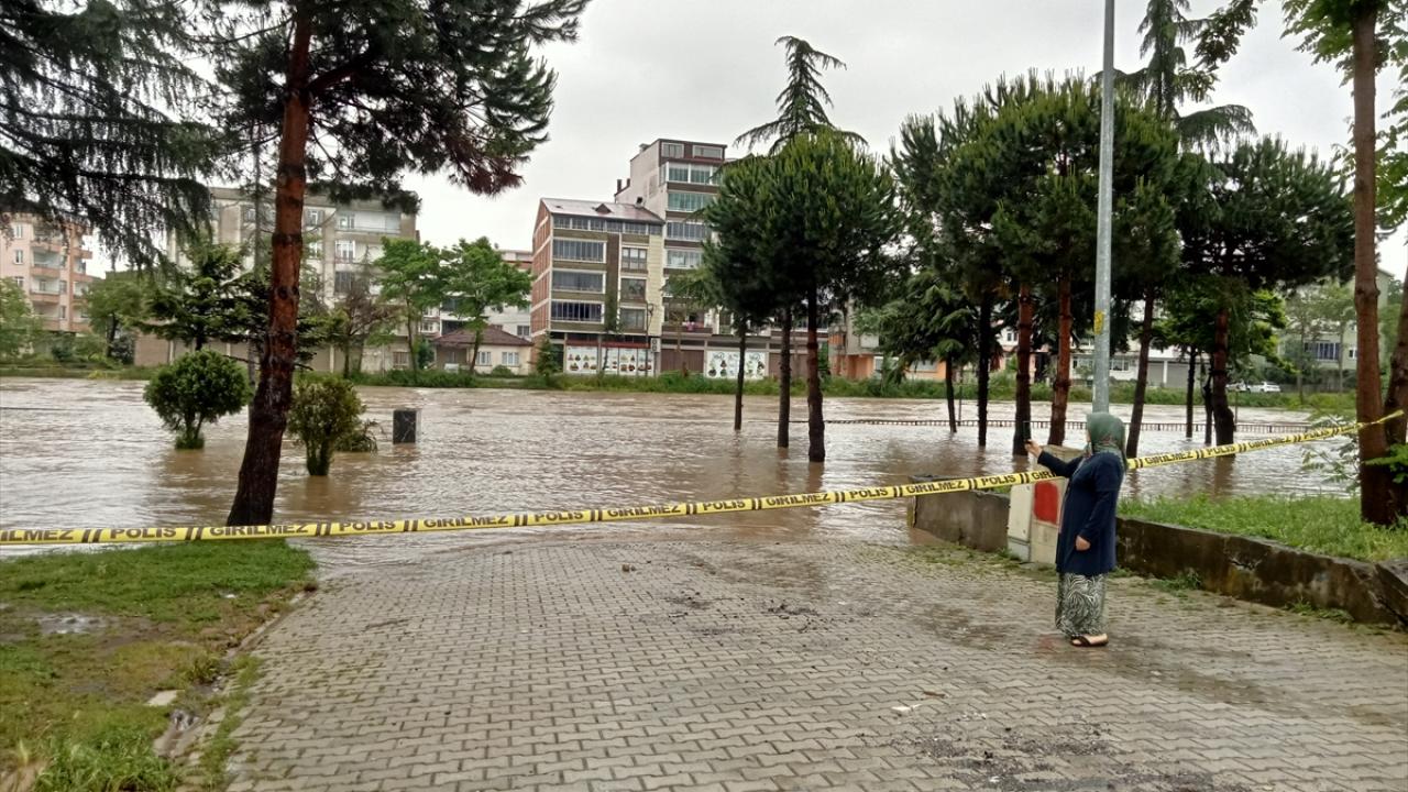 Samsun'un Terme ilçesinde şiddetli yağışlar nedeniyle Terme Çayı taştı. İlçede bugün taşımalı eğitime de bir gün ara verildi.